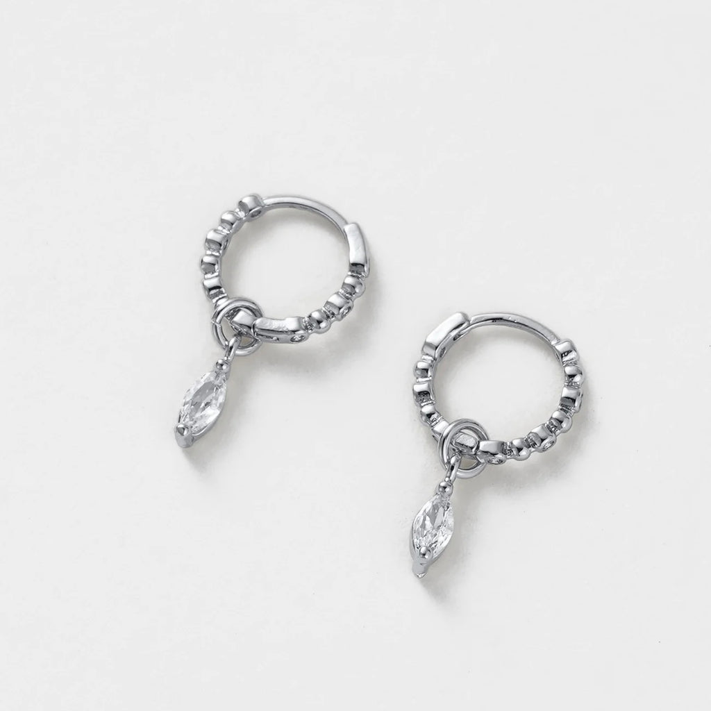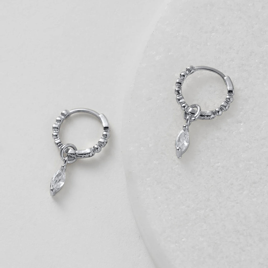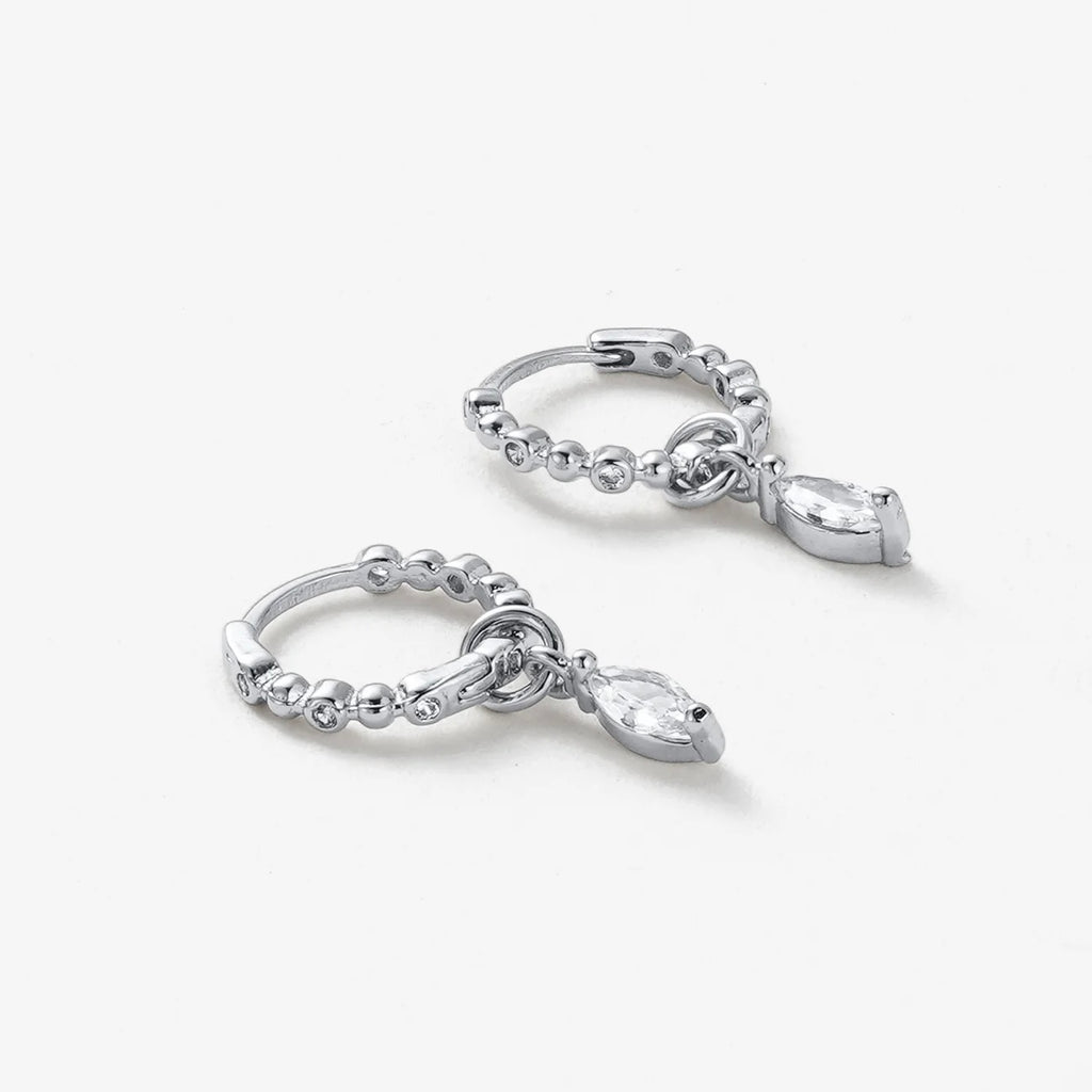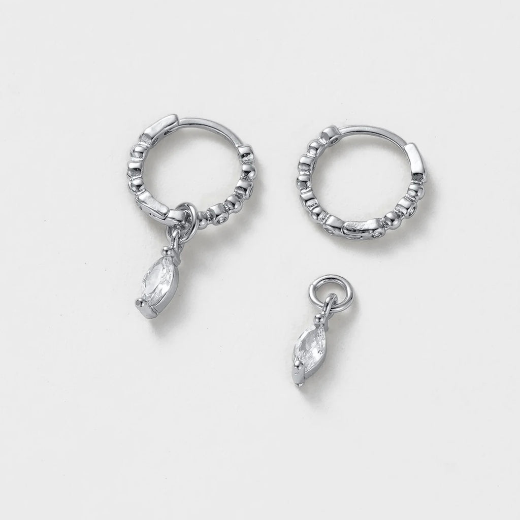 The Bridie Huggie is a delicate balance of texture and sparkle. Designed with a beaded gold hoop and finished with a marquise-cut crystal drop, this style adds effortless elegance to any look. Perfect for day-to-night wear, the Bridie Huggie can be worn solo as a statement or layered into your everyday stack for a touch of refined detail.
