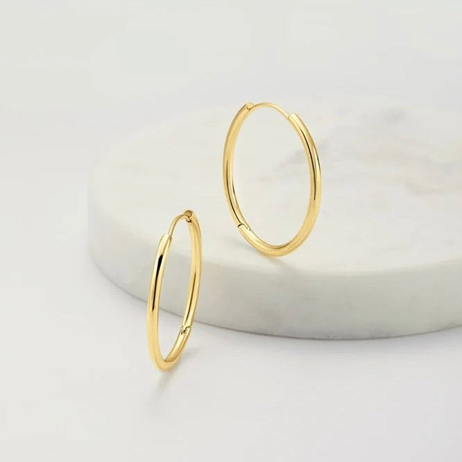 These fine and dainty hoops are crafted to perfection, making them the perfect accessory for any occasion or stack. With their understated charm and timeless design, the Delilah Hoops effortlessly elevate your everyday style. Add a touch of sophistication to your look with these versatile earrings that seamlessly transition from day to night.