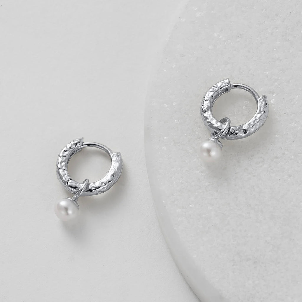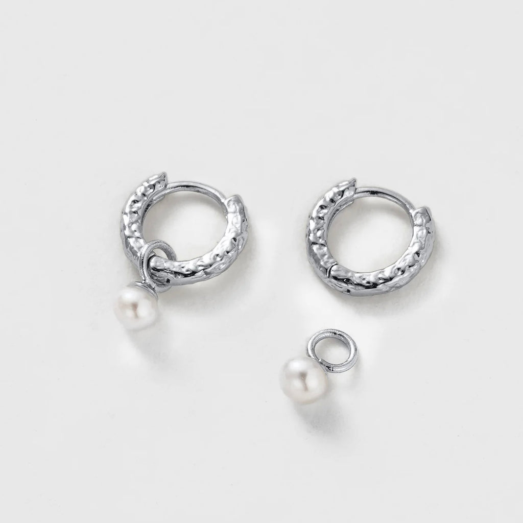 The Emery Huggie combines texture and elegance in one timeless design. Featuring a gold-toned, hammered-style hoop paired with a removable freshwater pearl charm, this earring offers versatility to suit any occasion. Wear it with the pearl for a refined, feminine look or on its own as a chic everyday hoop.