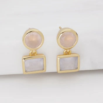 Jess Earring | Rose Quartz + Orange Jade