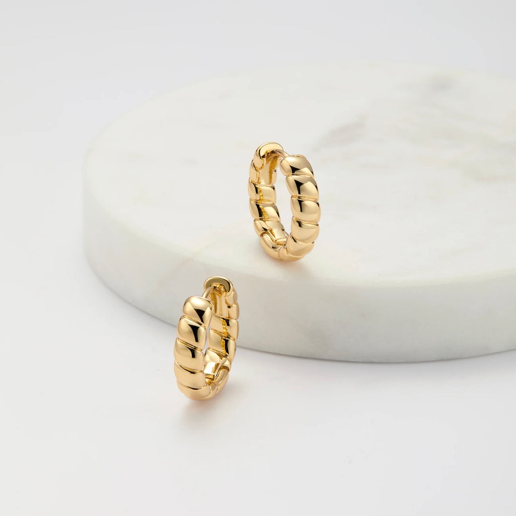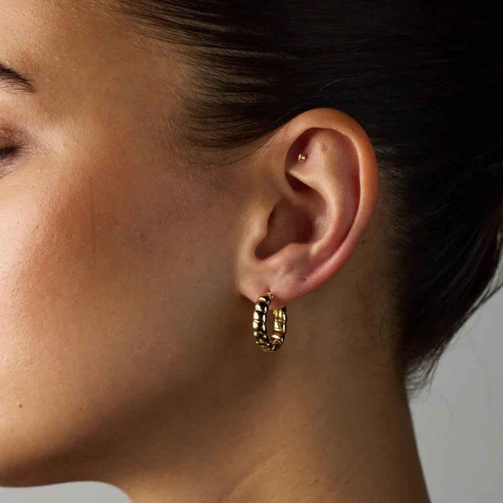 A medium-sized full hoop with an elegant twist detail that adds a unique element to a classic design. Perfect for both casual and formal occasions, these hoops offer a stylish balance of boldness and sophistication. The Macy Hoop Earrings are a versatile accessory, bringing texture and timeless charm to any outfit.