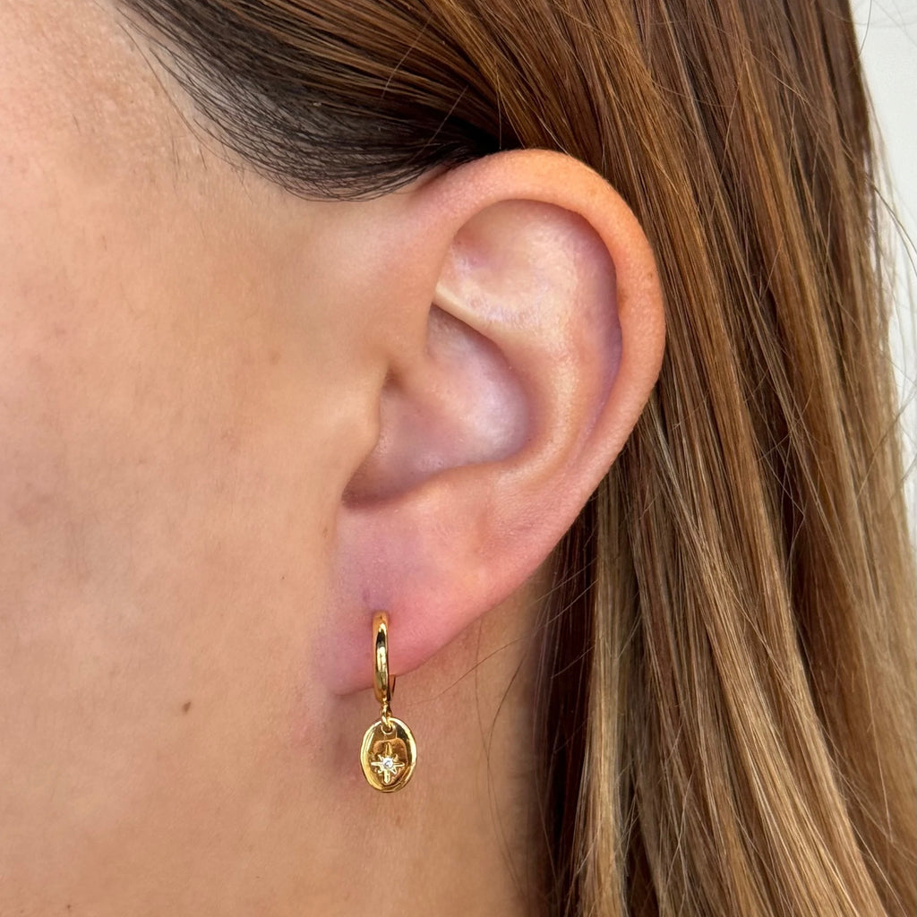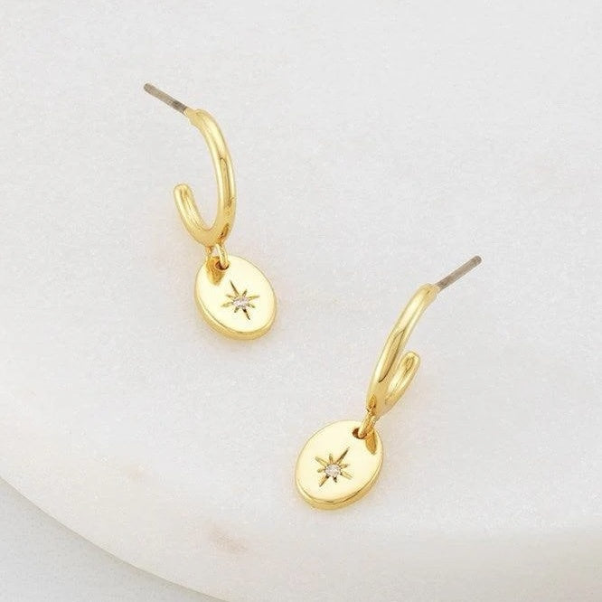A stunning and celestial addition to your jewellery collection. These earrings feature a beautiful disk charm with a sparkling crystal star in the centre that adds a touch of magic to your look. Made with high-quality materials and attention to detail, the Nala Earring is both durable and captivating. With their comfortable fit and easy-to-wear closure, they are perfect for everyday wear or special occasions. The celestial and elegant design of these earrings makes them perfect for pairing with a variety of outfits. Elevate your style with the Nala Earring - the perfect accessory for a magical and enchanting look.