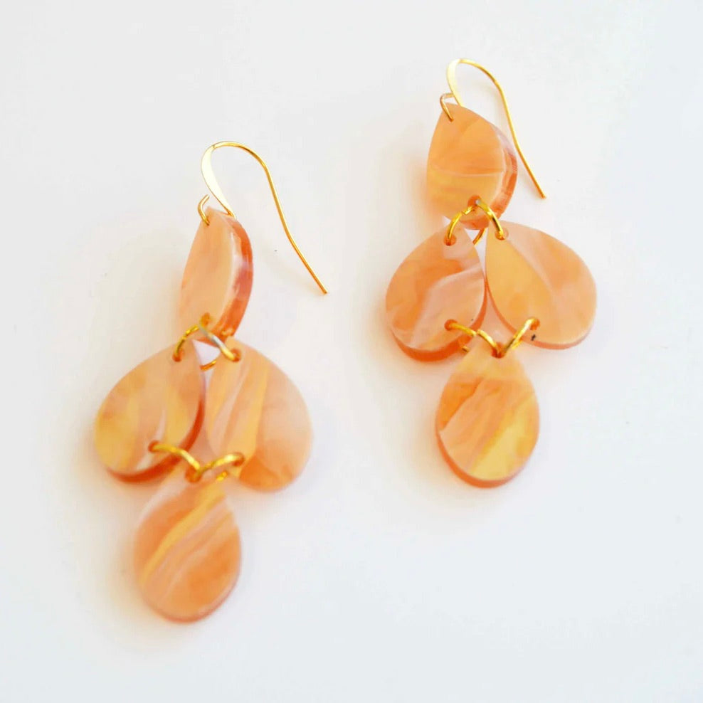 Statement earrings inspired by Parisian elegant chandeliers in a gorgeous peach swirl acrylic.