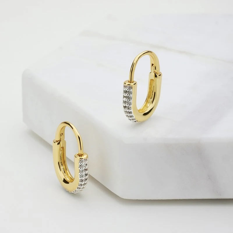 A modern twist on a timeless favourite, the Phoebe Hoops feature a sleek gold finish accented with a row of sparkling crystals. Designed to elevate your everyday look, these lightweight earrings transition seamlessly from desk to dinner. Wear them solo for understated elegance, or stack with your favourite studs for a bolder statement.