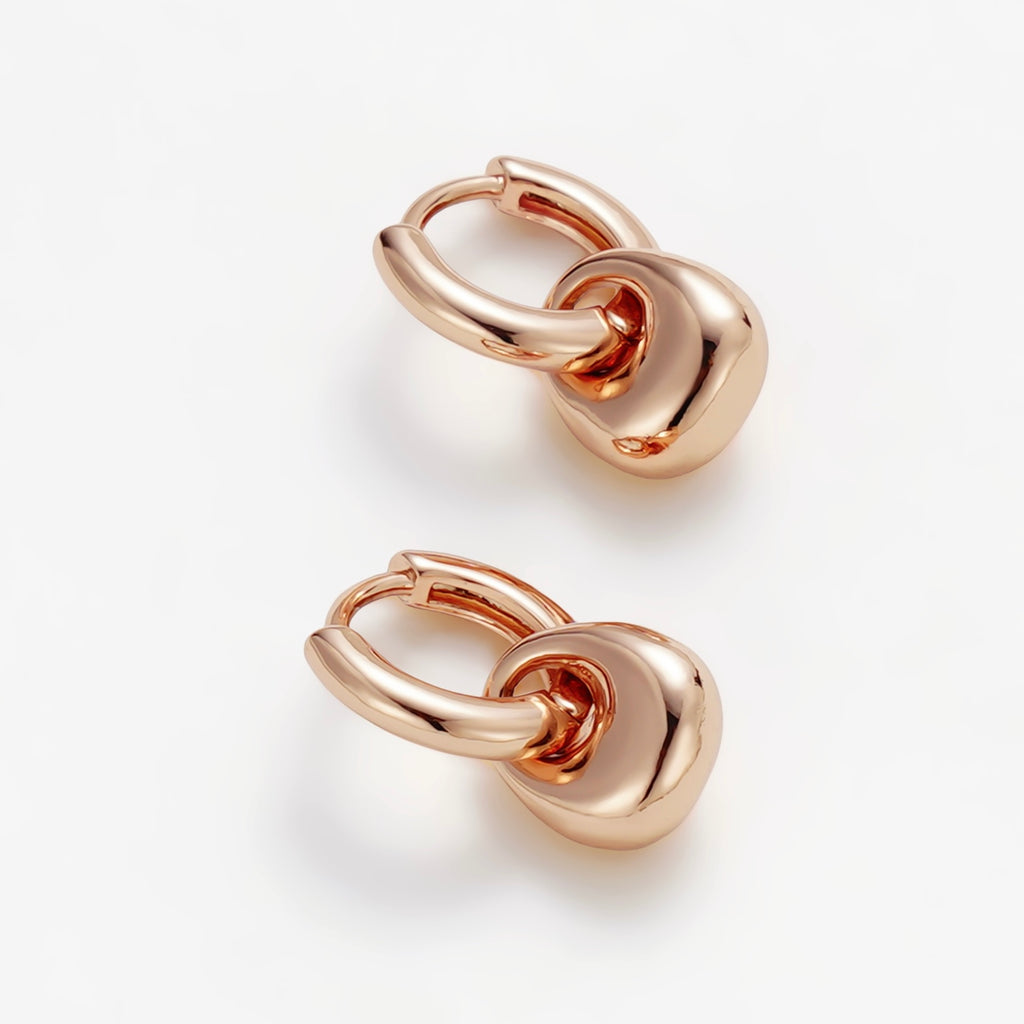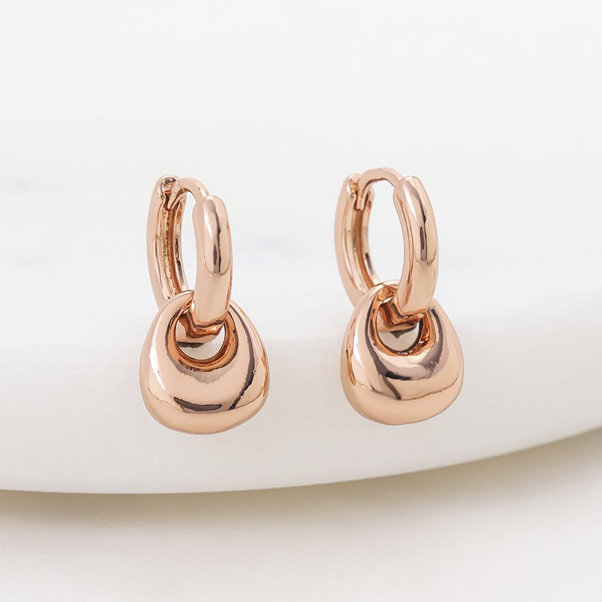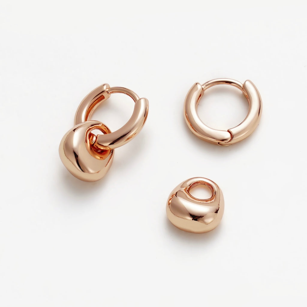 The Sadie Hoop in rose gold blends sculptural design with modern elegance. Featuring a smooth hoop accented by a bold, organic-shaped charm, these earrings add a touch of effortless sophistication to any outfit. Lightweight yet striking, they’re perfect for both everyday wear and evening styling.