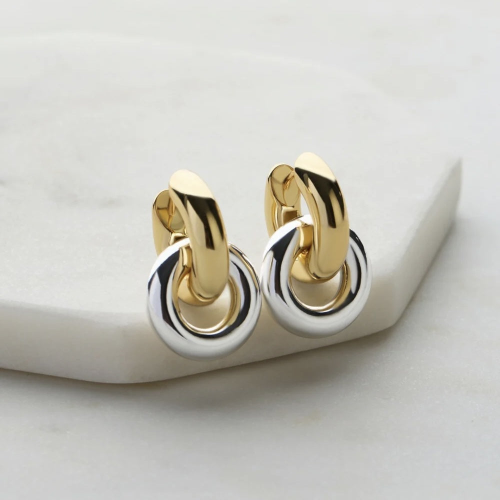 The Skye Hoop is a bold, sculptural style that fuses polished gold and silver tones in a striking interlinked design. Modern yet timeless, these hoops add instant impact to any look while remaining versatile enough for everyday wear. Pair with minimal studs for balance, or style alongside other mixed-metal pieces like the Freya Ring for a curated finish.