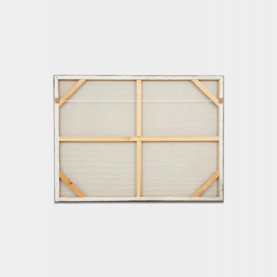 Acrylic paint on stretched canvas, pine stretcher frame.