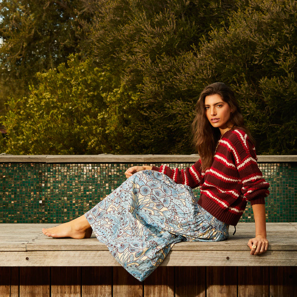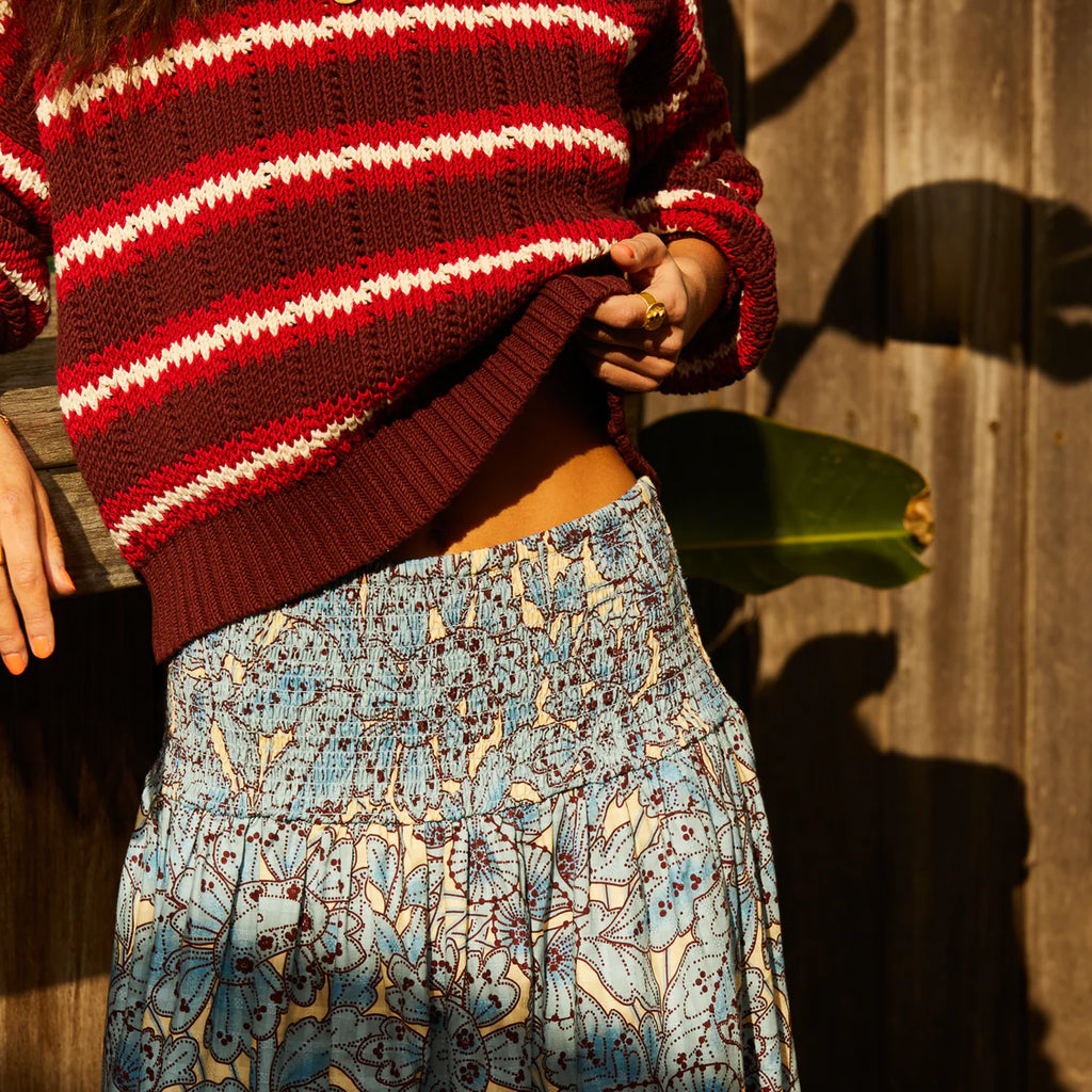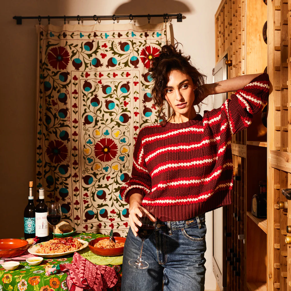 Slip into laid-back style with this slouchy knit jumper, blending all-day comfort with a touch of retro charm. With nostalgic stripes and a relaxed fit, it’s perfect for layering over bathers or wide-leg pants. Just add slides or denim for that effortless, throw-on-and-go feel.
