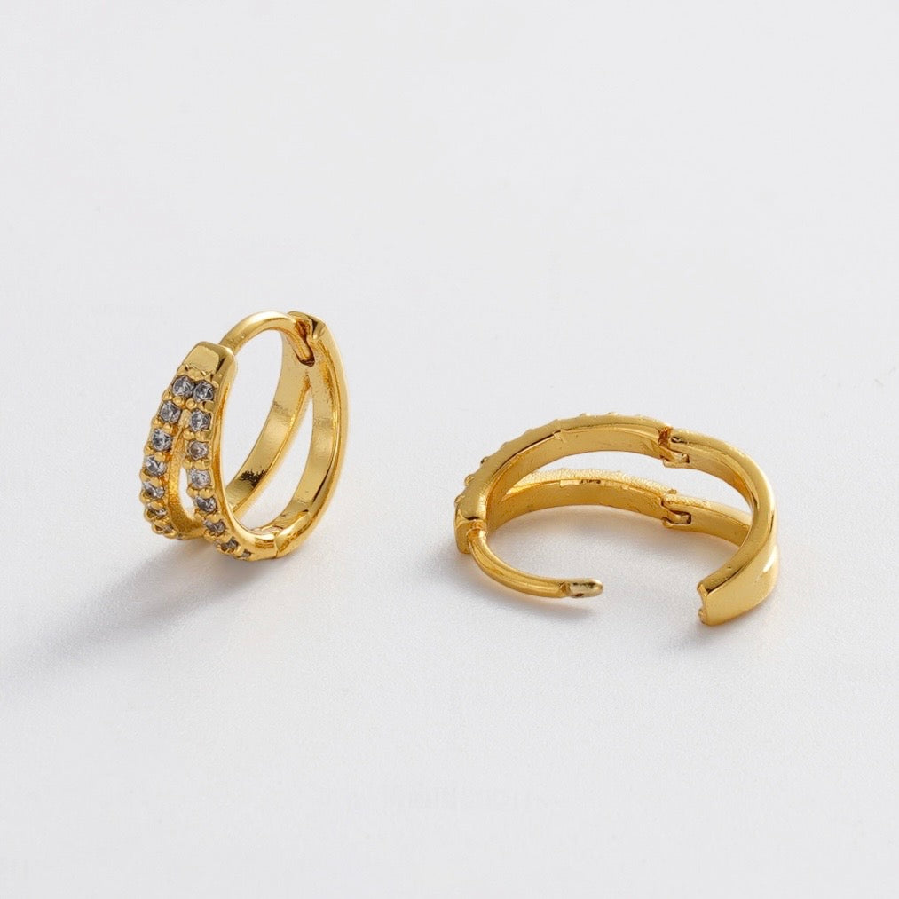 Elegant gold Huggies accented with sparkling pavé stones—compact, timeless, and perfect for adding subtle shine to any look.