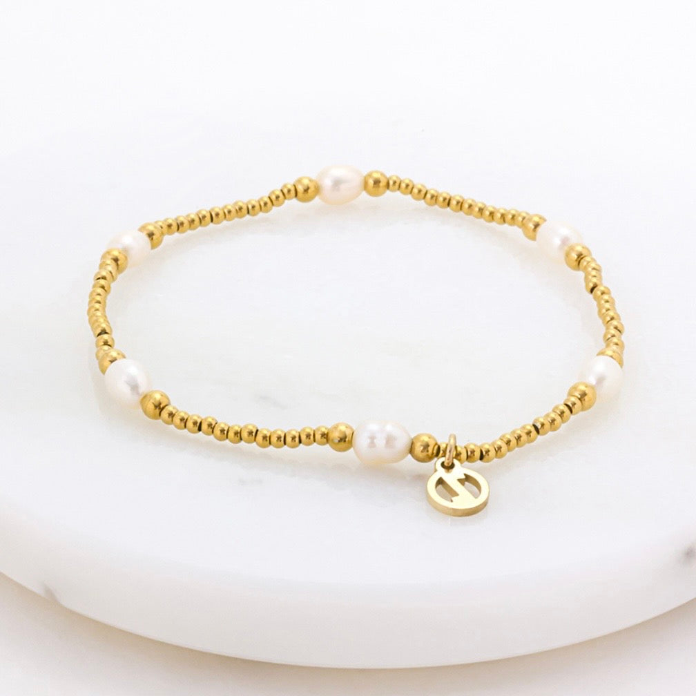The Ella Bracelet in Gold is a refined classic made for effortless styling. Featuring freshwater pearls paired with polished gold-toned beads, this bracelet brings a touch of sophistication to your jewellery collection. With its comfortable stretch fit, it's perfect for both daily wear and layering