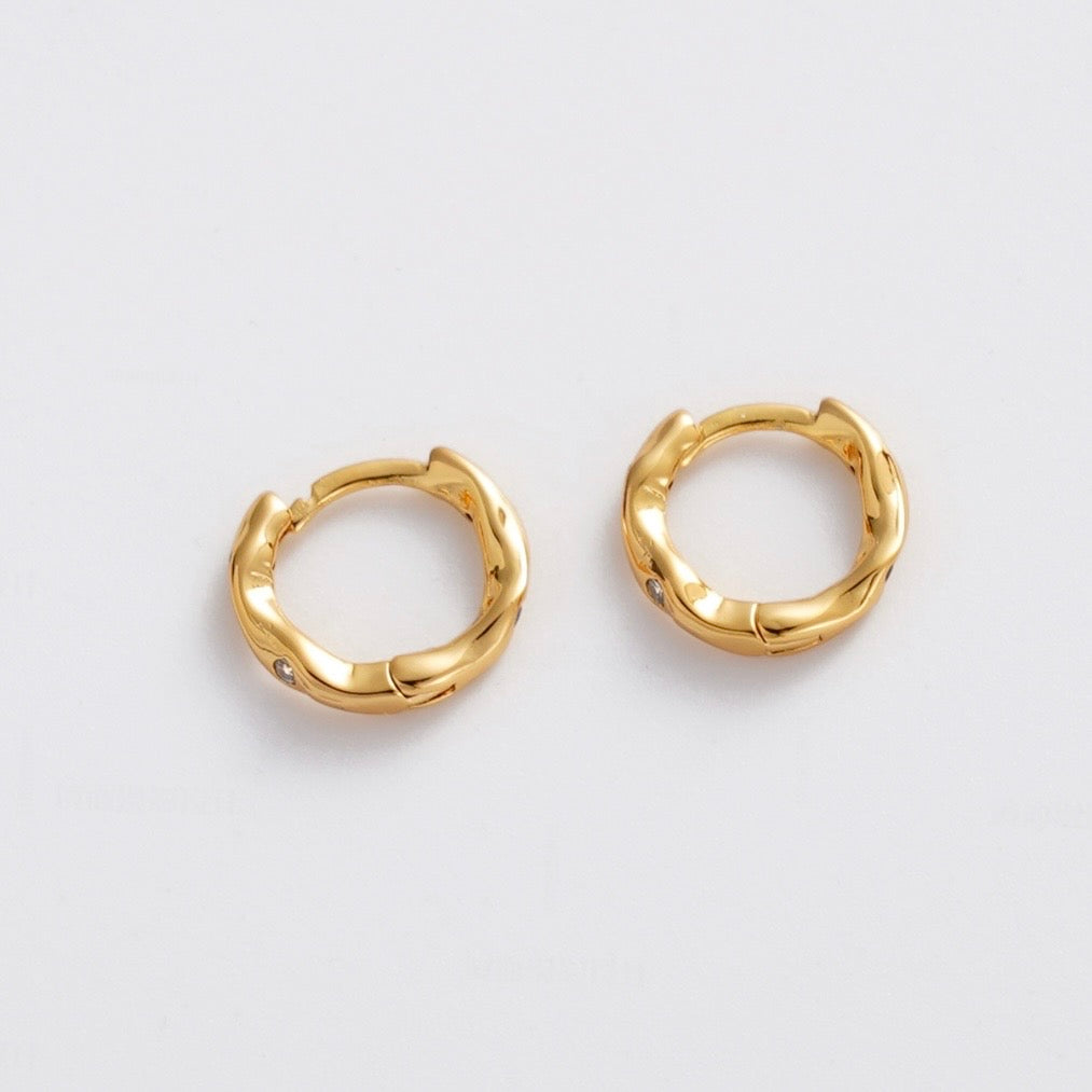 Gold hoop earrings with an organic, textured finish and subtle stone accents—designed to add character and softness to everyday styling, whether worn alone as a statement or paired with other pieces for a layered, refined look.