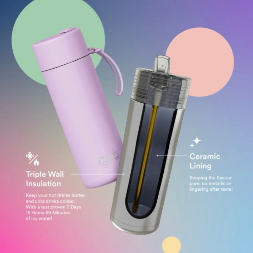 Featuring a 12oz Hinged Ceramic Cup, and a 20oz Ceramic Bottle with Flip lid
