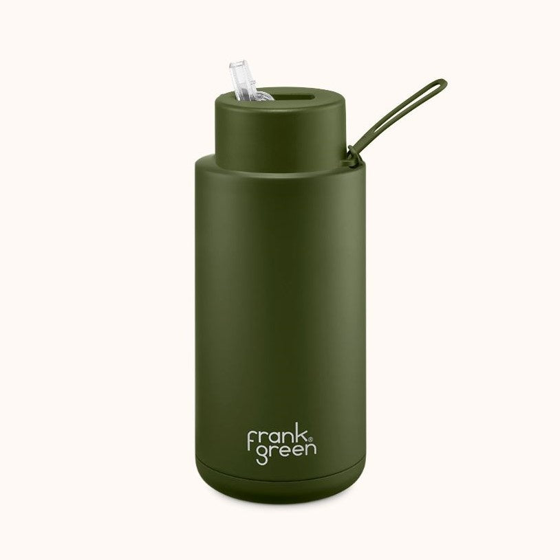 Stainless Steel Reusable Bottle with Straw (34oz) | Khaki