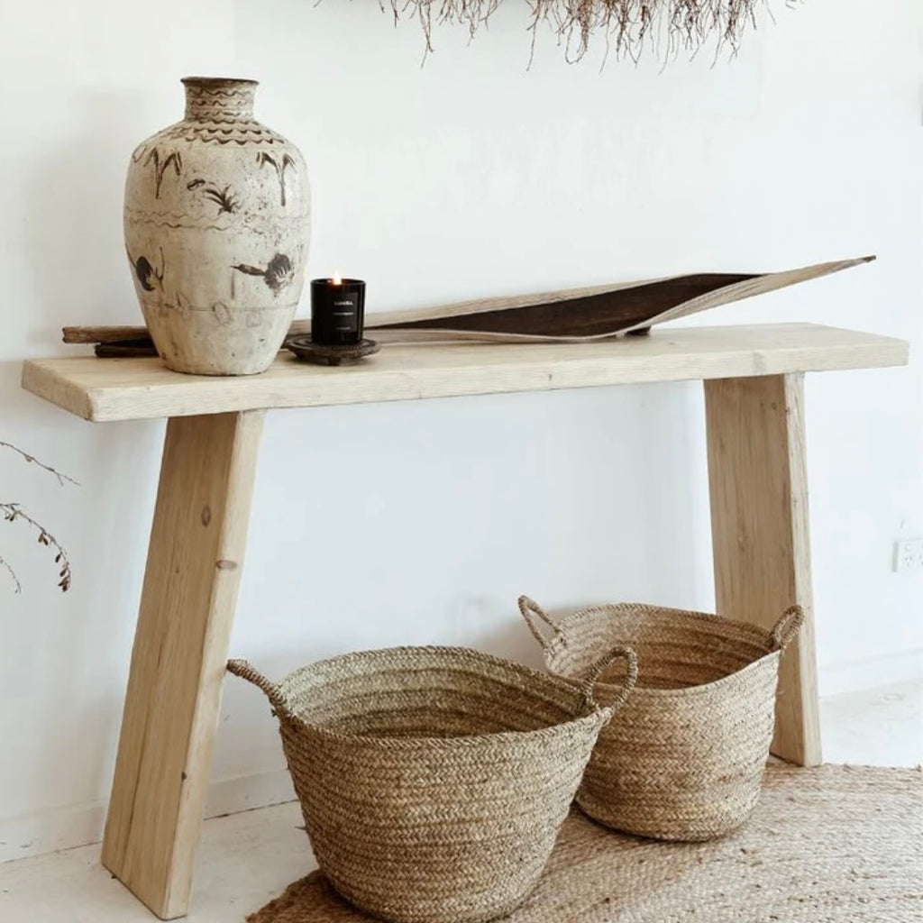 Crafted from recycled Elm wood our Console Table creates a fixture to place and style your ornaments adding to your home. Position in a corner and pair with our Coffee table to balance your space.