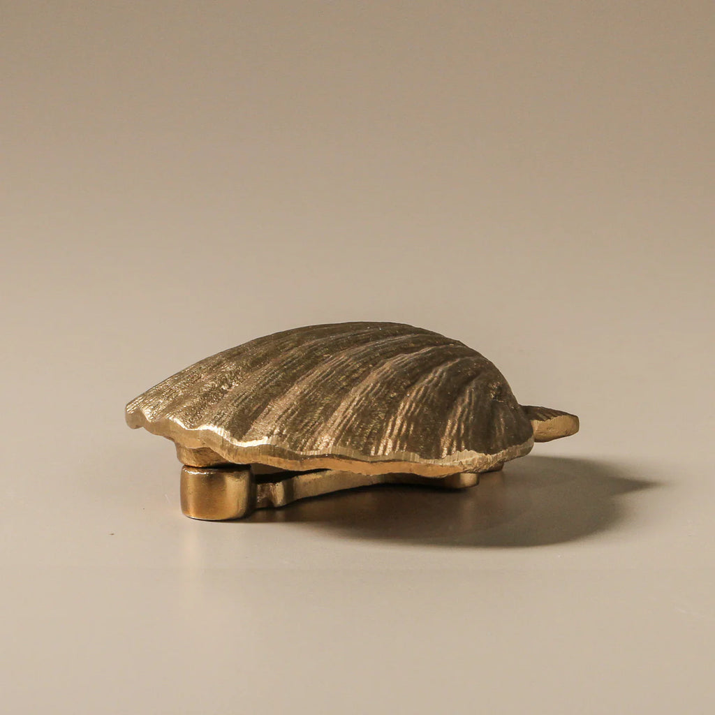 Unique and beautiful, our Beachcomber Door Knocker is crafted from iron with an antique brass finish. It takes the form of a clam shell, evoking a natural, organic design inspired by coastal landscapes. This unique piece brings a sense of the sea to your entryway, offering a tactile connection to the environment around it. Its sculptural form creates visual contrast against the door, drawing attention while maintaining a refined, subtle presence.
