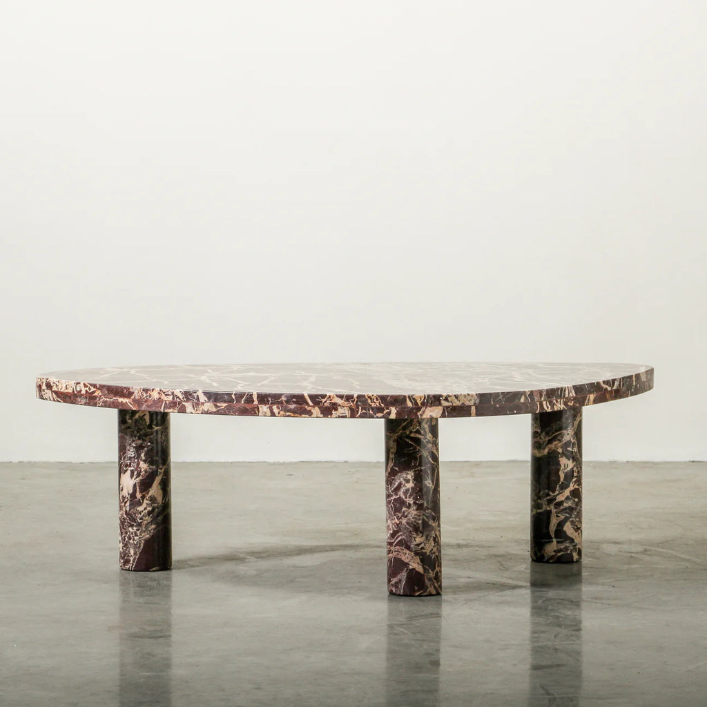 Introducing the Cameo Stone Coffee Table, a sculptural marble piece designed to ground your space with natural richness and refined form. Crafted entirely from Cherry marble, this table blends deep burgundy tones and subtle veining with a softly contoured silhouette.
