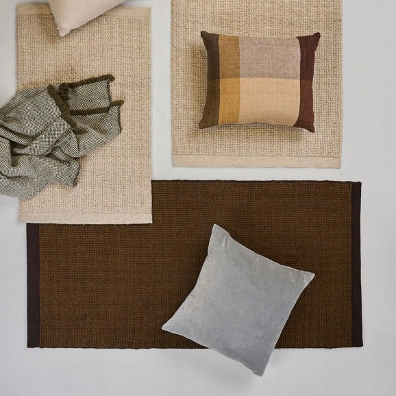 Enhance areas throughout your home with the Joni wool mat. Its tactile texture and retro colour palette evoke a comforting sense of warmth reminiscent of bygone eras.