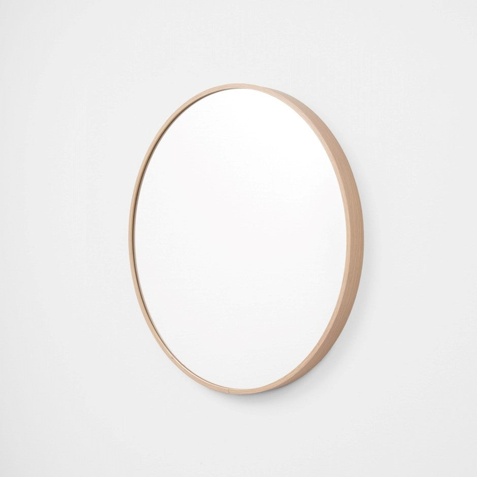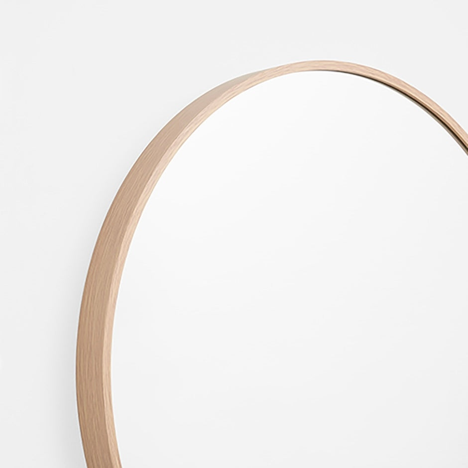 This piece features a slim metal frame, finished with a light oak-look synthetic wrap with a simple join at the base of the mirror. This modern timber-inspired colourway is endlessly versatile, complimenting both bright and neutral colour schemes.
