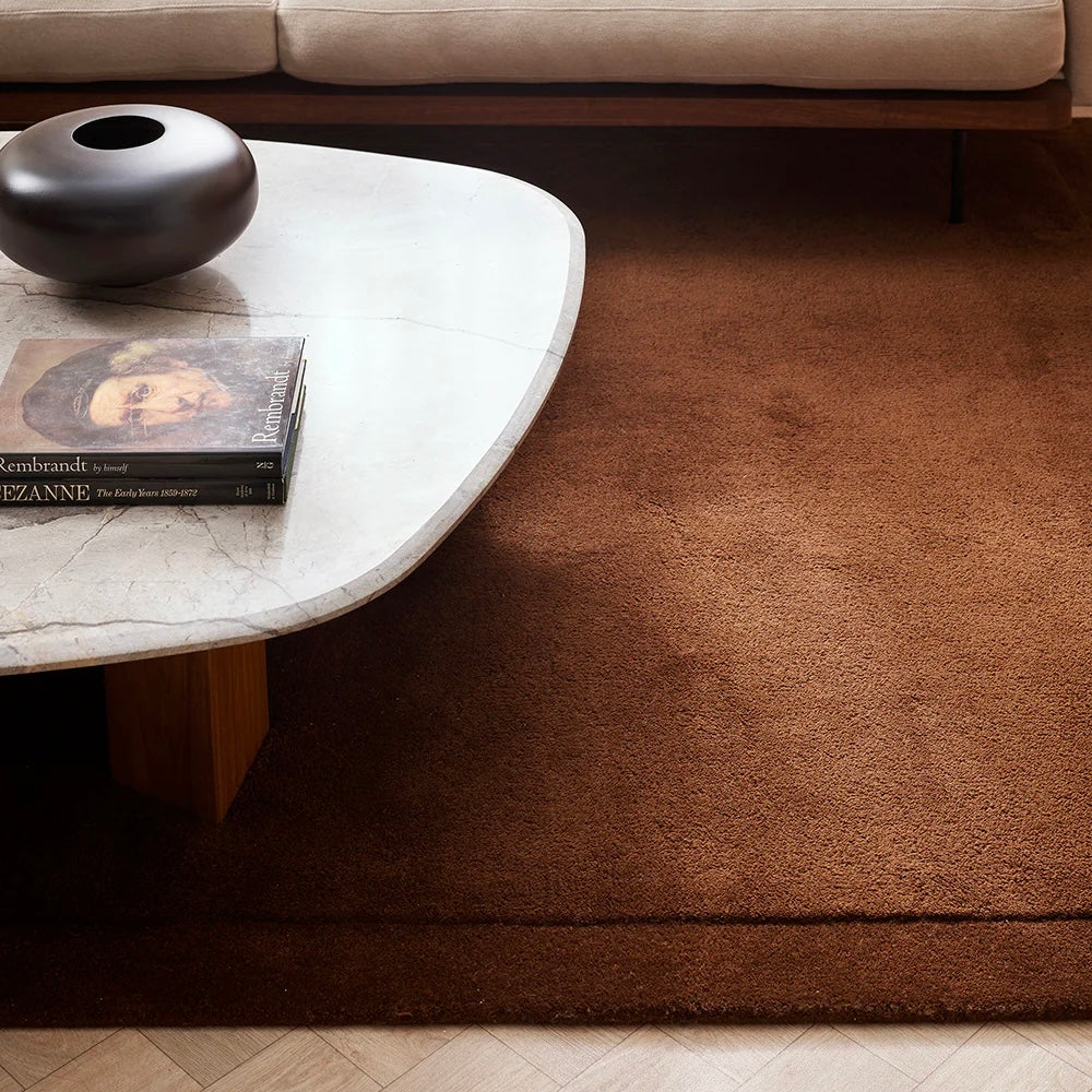 Immerse yourself in the soft underfoot texture of the Norfolk floor rug. Handcrafted from pure New Zealand wool, the rich chocolate-brown colourway and sumptuous 27mm pile embody understated luxury. Finished with a minimal cut-pile border, this refined design adds a beautiful sense of depth and form to spaces.