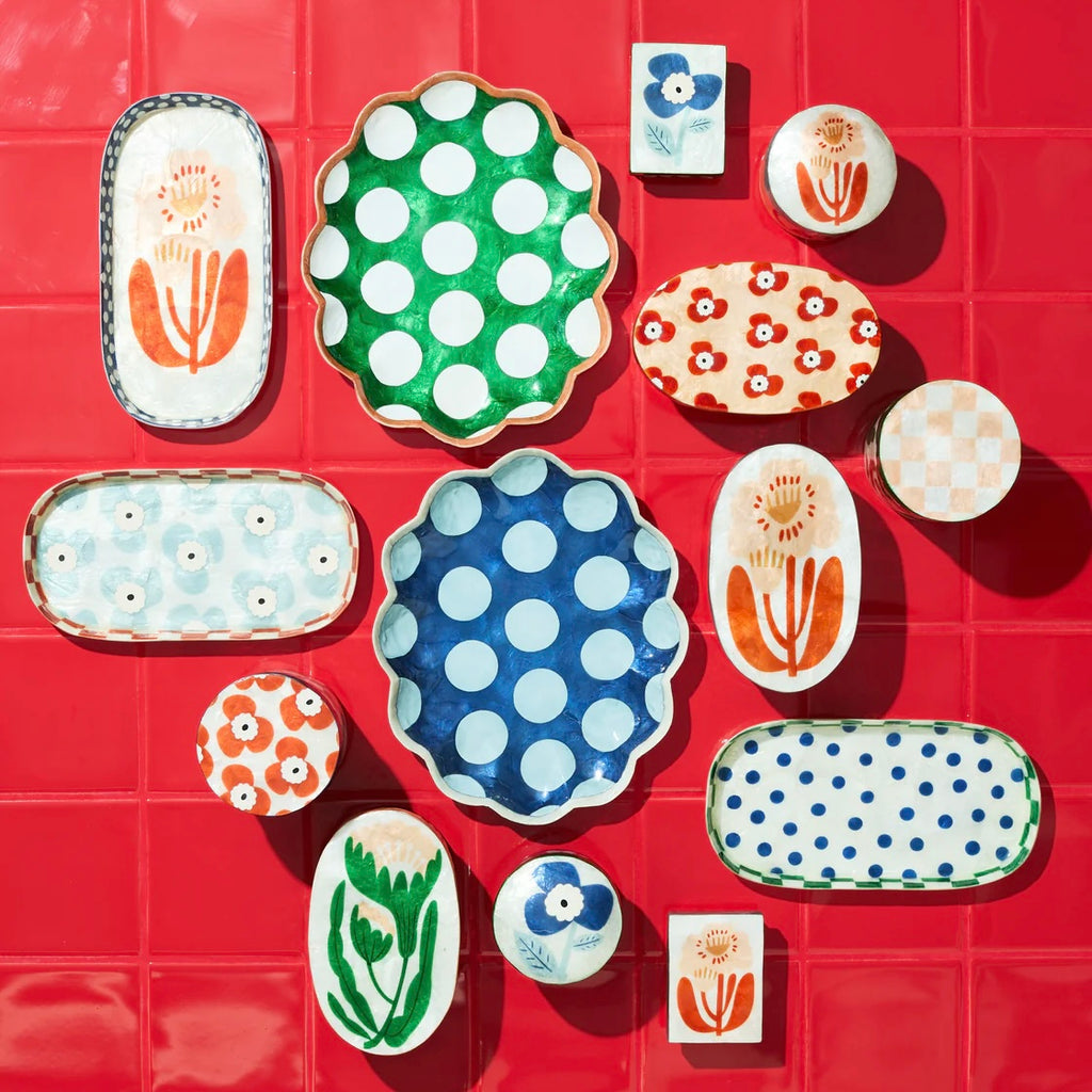This sweet arched mirror frames your reflection with stylised green and pink hand-painted flowers on luminous Capiz shell. Designed in Sydney and crafted by skilled artisans, the frame captures light differently throughout the day. The natural iridescence of the shell ensures your Paradis mirror is uniquely yours a functional accent that brings unexpected joy to entryways, bedrooms and powder rooms in your home.