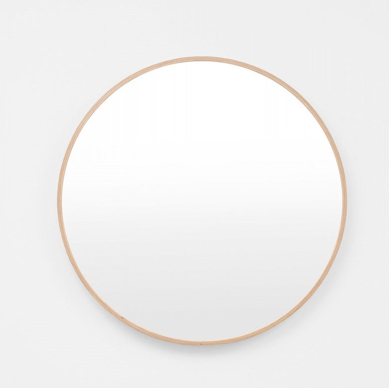 This piece features a slim metal frame, finished with a light oak-look synthetic wrap with a simple join at the base of the mirror. This modern timber-inspired colourway is endlessly versatile, complimenting both bright and neutral colour schemes.