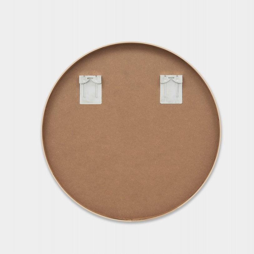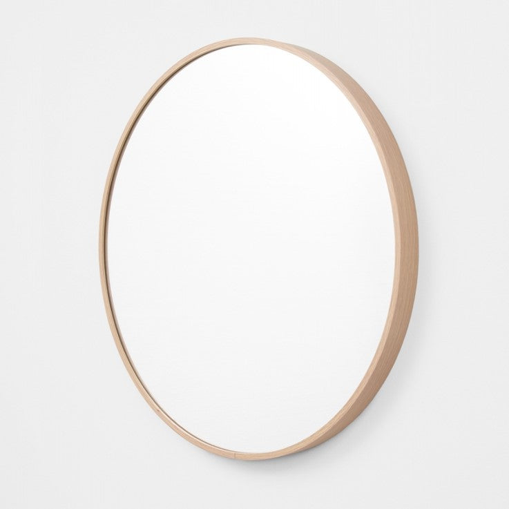 This piece features a slim metal frame, finished with a light oak-look synthetic wrap with a simple join at the base of the mirror. This modern timber-inspired colourway is endlessly versatile, complimenting both bright and neutral colour schemes.