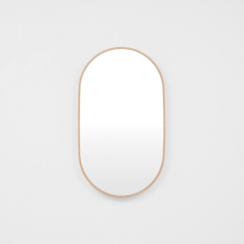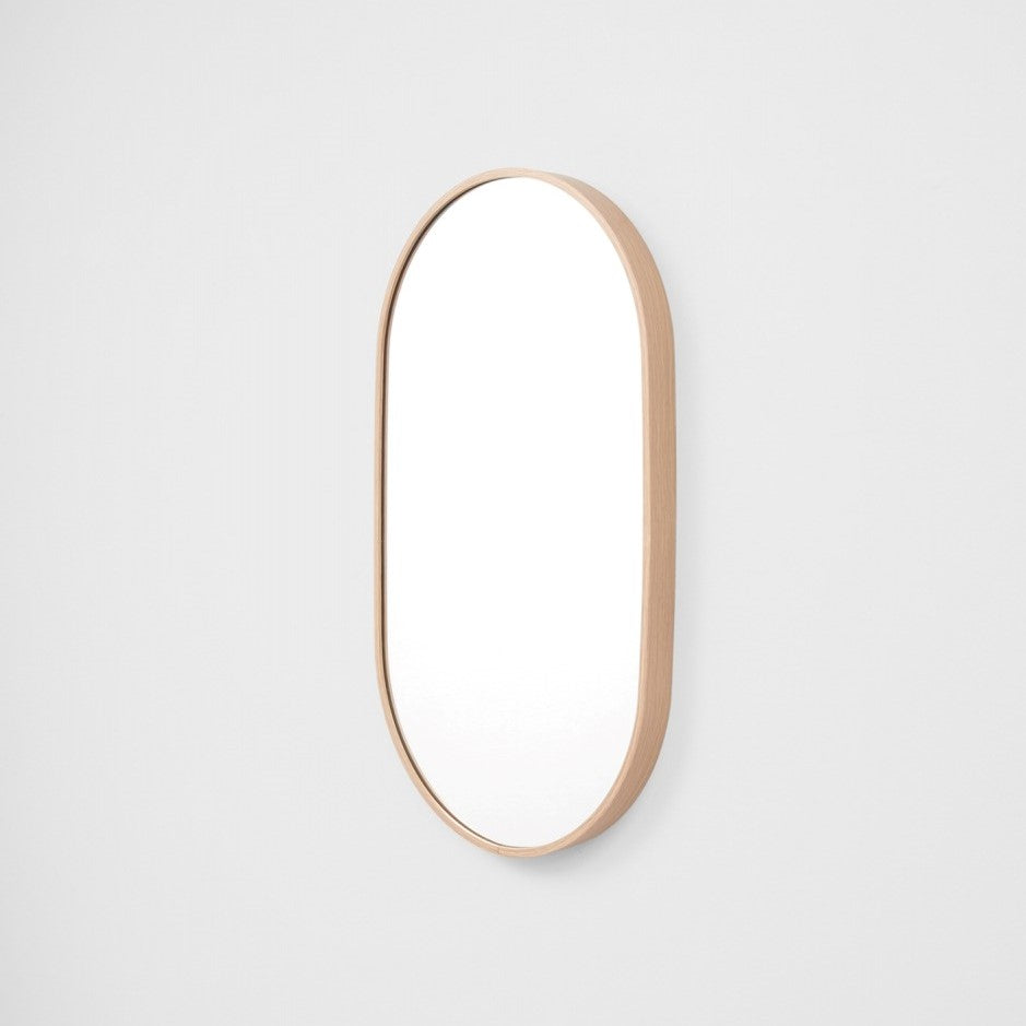 The Simplicity Oval mirror can be hung either vertically or horizontally, as shown.