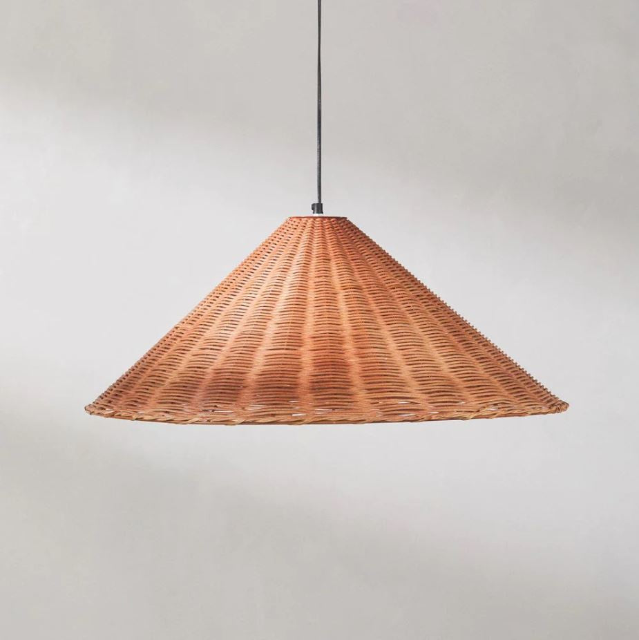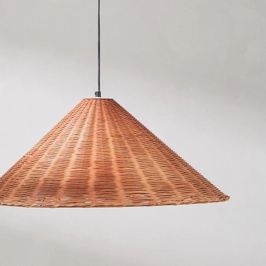 The Cassia Rattan Pendant light is handcrafted from natural rattan and designed to bring a laid-back coastal vibe to any home. The triangular shape of the Cassia rattan shade is both sleek and stylish. The hat-like lamp shade design is reminiscent of the mid-century 9602 Floor Lamp, also known as “Chinese Hat”, designed by Paavo Tynell. The Cassia Rattan pendant is the perfect choice for those who appreciate timeless design. This pendant will hang perfectly above a dining table, setting the mood perfectly.