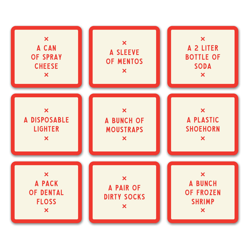 See, you only have 3 randomly drawn objects at your disposal to use—anything from a rubber duck to a can of spray cheese. With endless possibilities and endless laughter, this game is guaranteed to keep the party going long into the night!