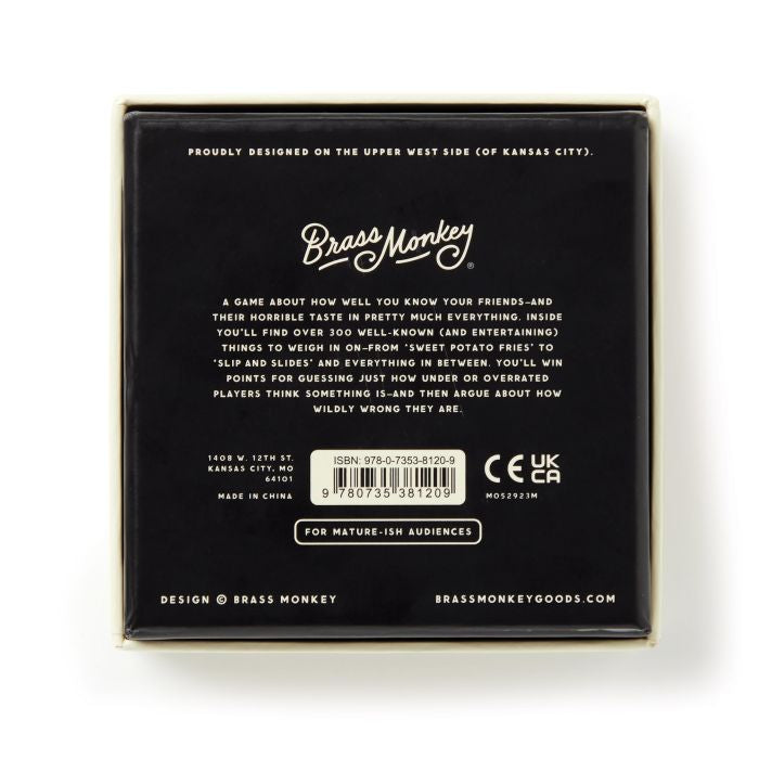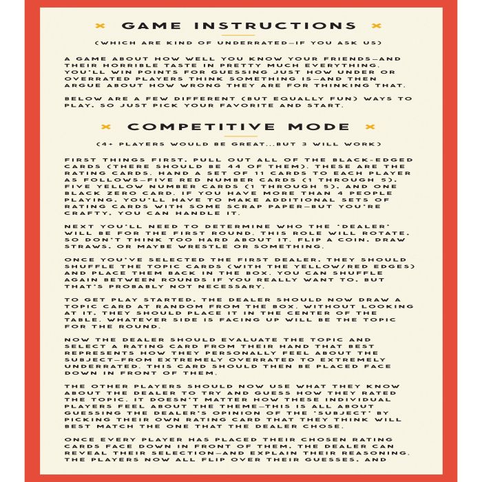You’ll win points for guessing just how under or overrated players think an item is–and then argue about how wrong they are.