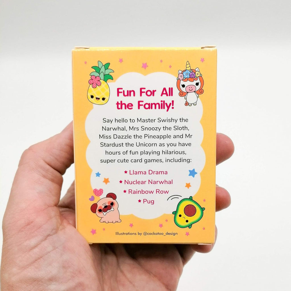 Say hello to Master Swishy the Narwhal, Mrs Snoozy the Sloth, Miss Dazzle the Pineapple and Mr Stardust the Unicorn as you have hours of fun playing hilarious, super cute card games