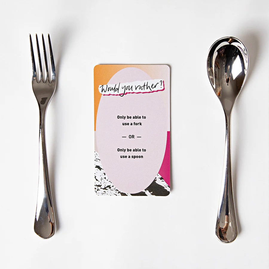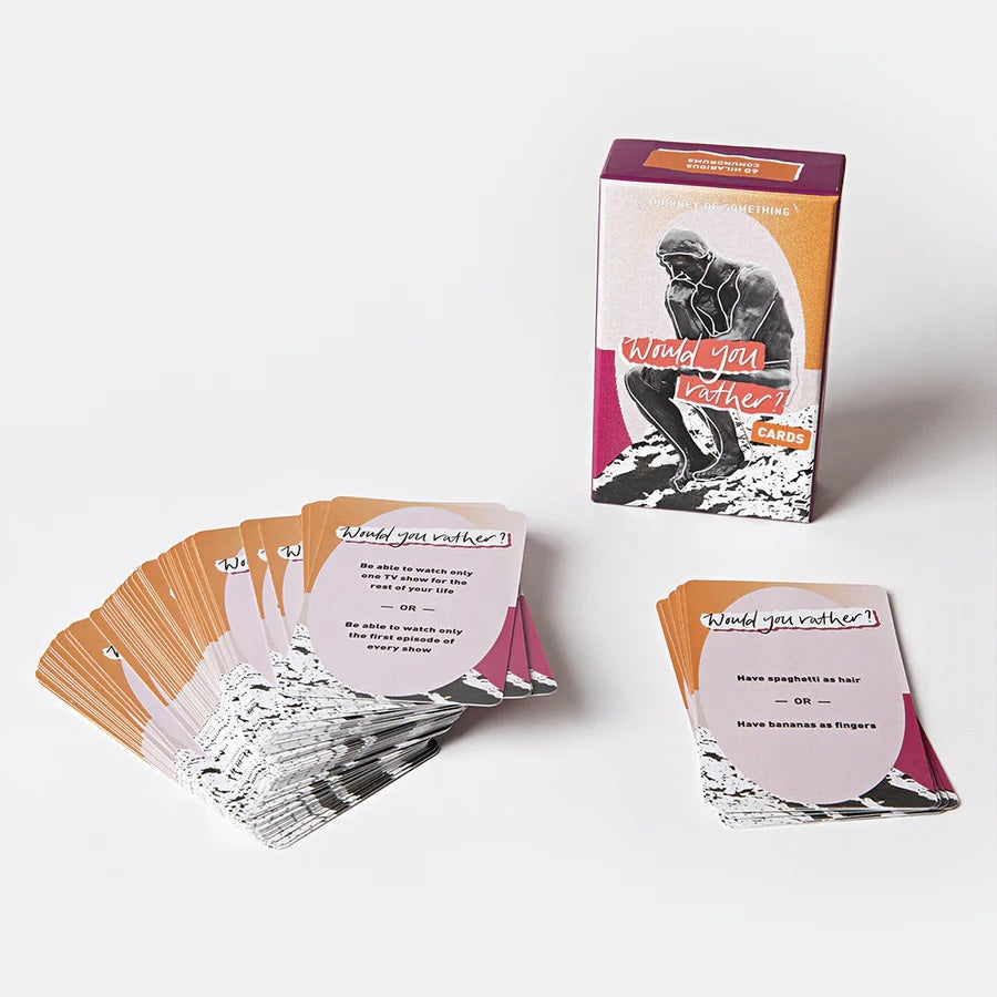 60 funny, thought provoking and whacky Would You Rather Cards.