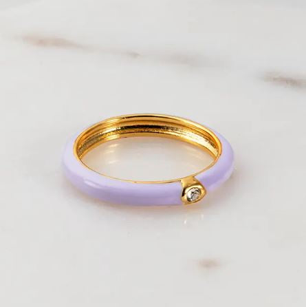 Made Nickel Free Hypoallergenic brass metal 18k Gold Plated Lilac Enamel Water Resistant coating.
