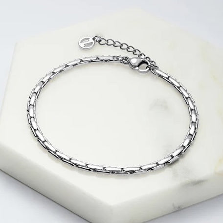 The stunning Mia Bracelet is crafted in Silver Rhodium plating with a brass base. The size is 17cm with a 3cm extender. The perfect piece to layer or wear in it's own to elevate any look.