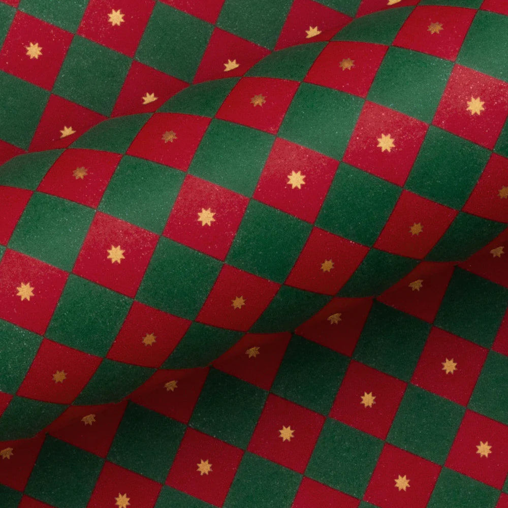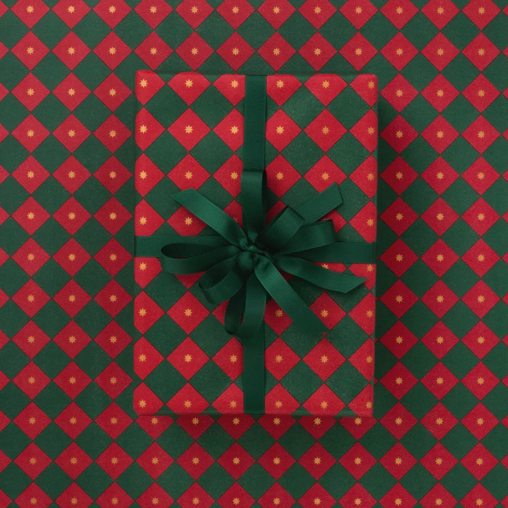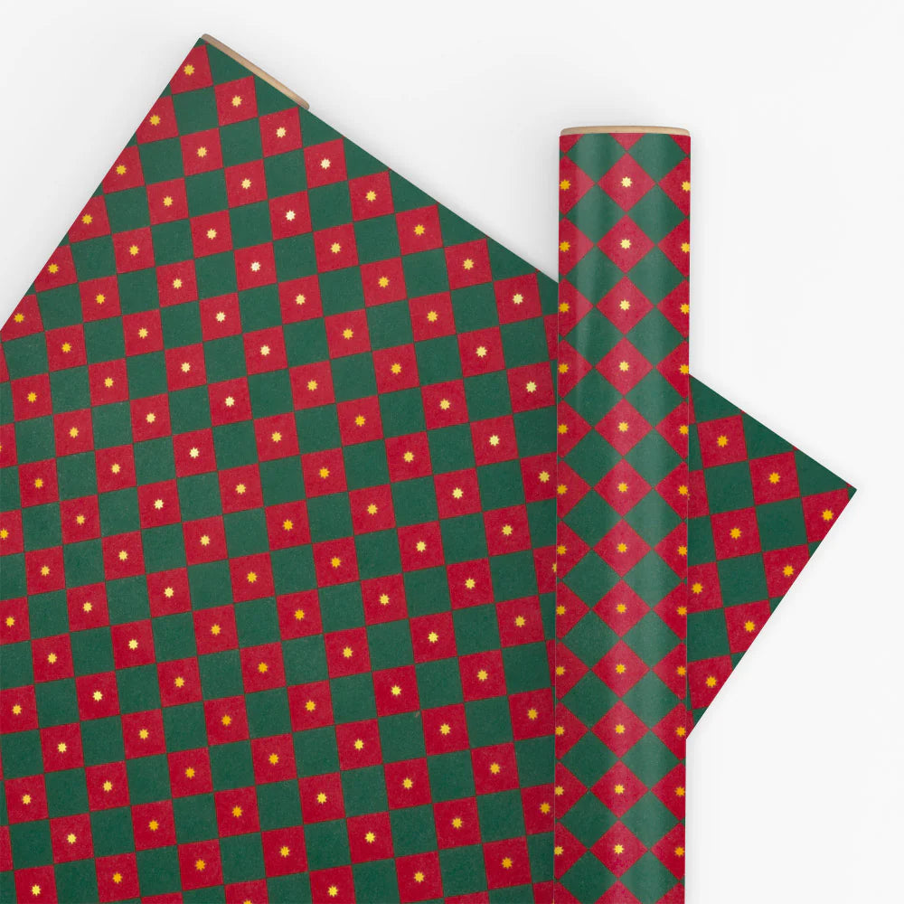 Gift Wrap | Checkerboard | Dark Green + Red | 10m