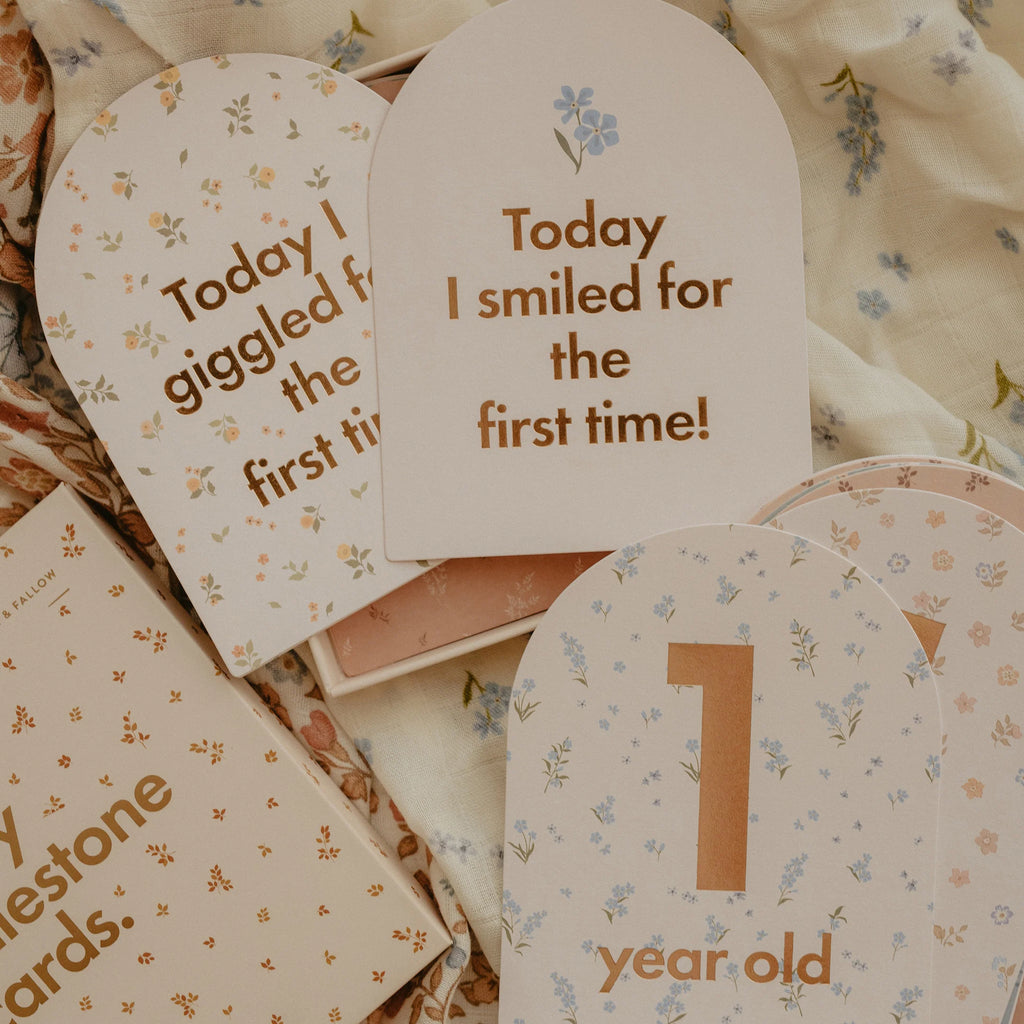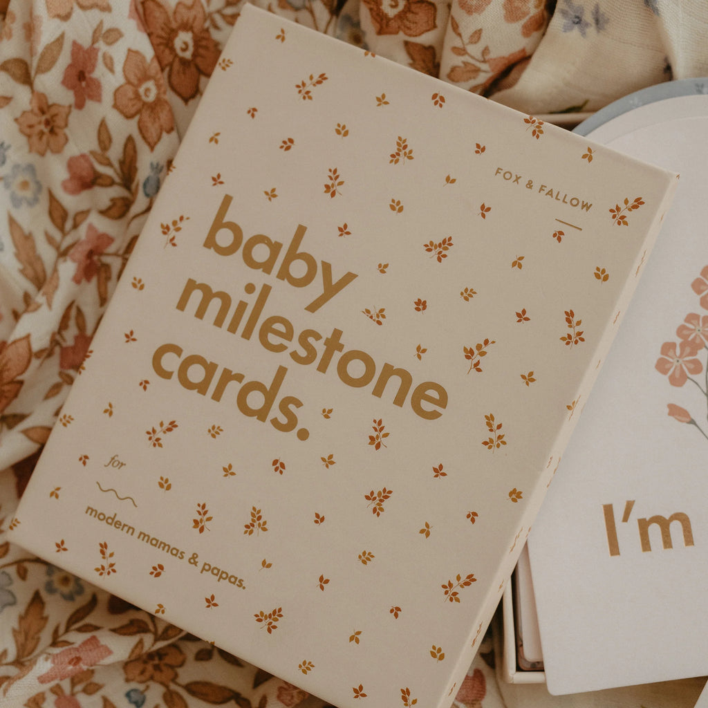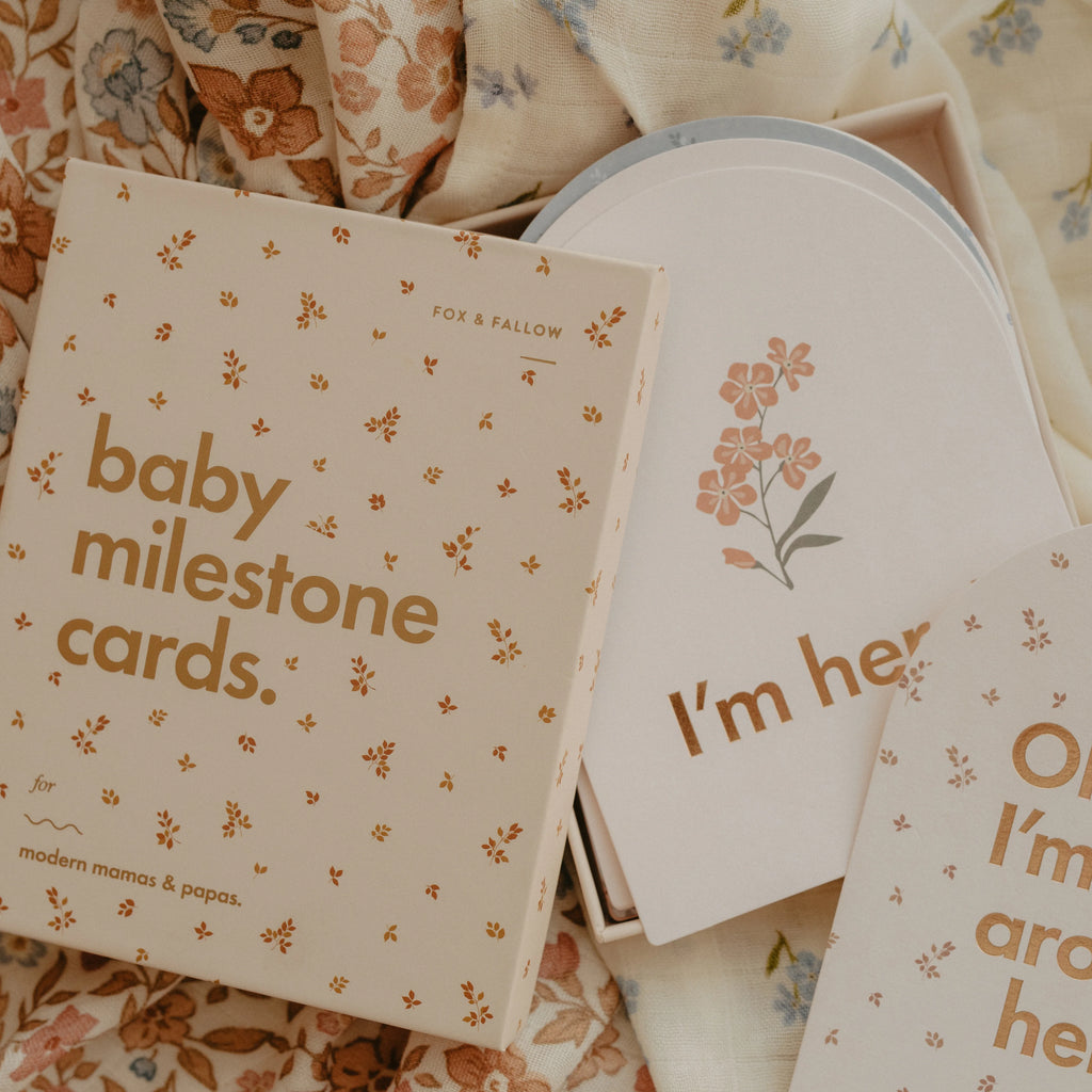 Celebrate those precious moments with Fox & Fallow’s Baby Milestone Cards for modern mamas and papas. Just snap a photo of your little one next to each card and share it with your family and friends.