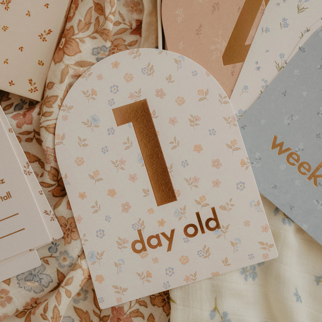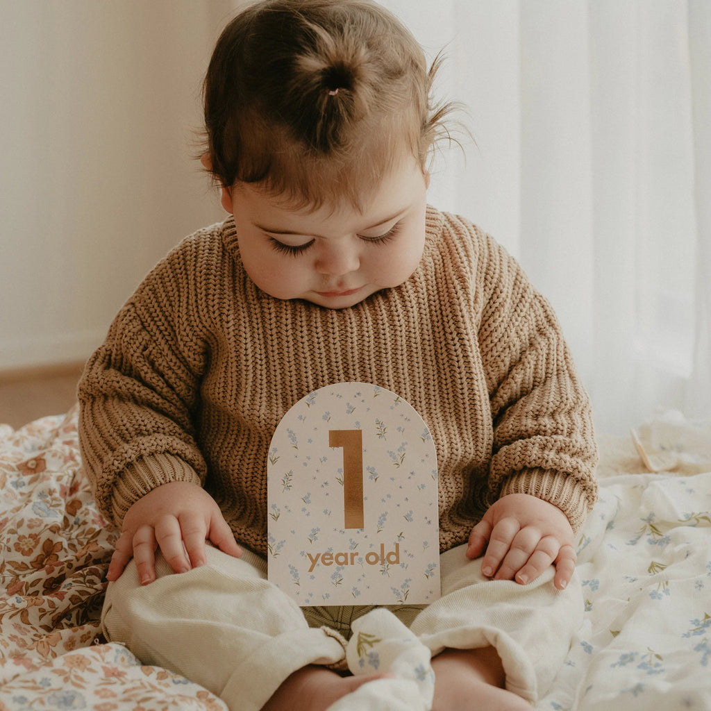 Includes 34 cards with rounded corners safe for little hands, a special card for your birth announcement, plus all the important milestones from one day old to one year old. All in gender neutral colours with gold foil on every card.