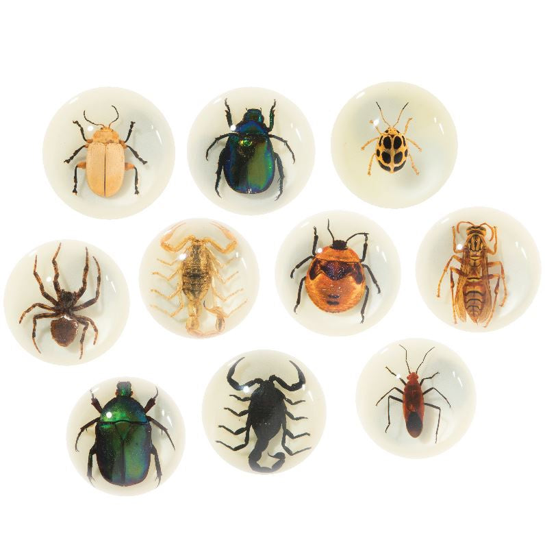 Children can use these Mini Beast Magnets to examine features of insects and arachnids. Encased in indestructible resin these specimens are perfect for use with young children and fun if used in a dark room – they glow in the dark. Create interesting displays that glow in the dark by attaching them to metal surfaces. Suitable also for cross-curriculum activities such as sorting and counting activities in maths.