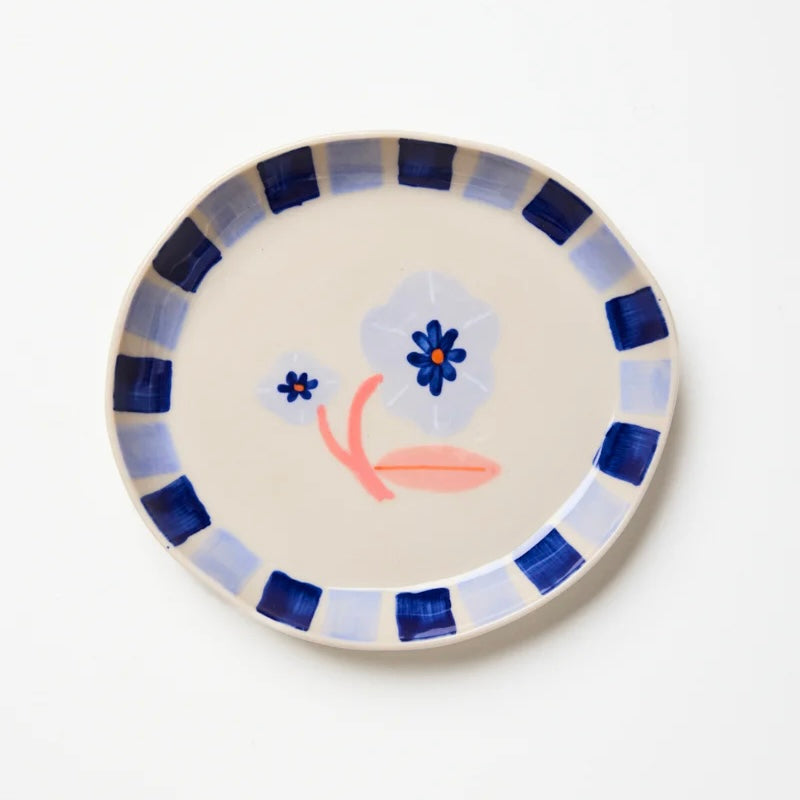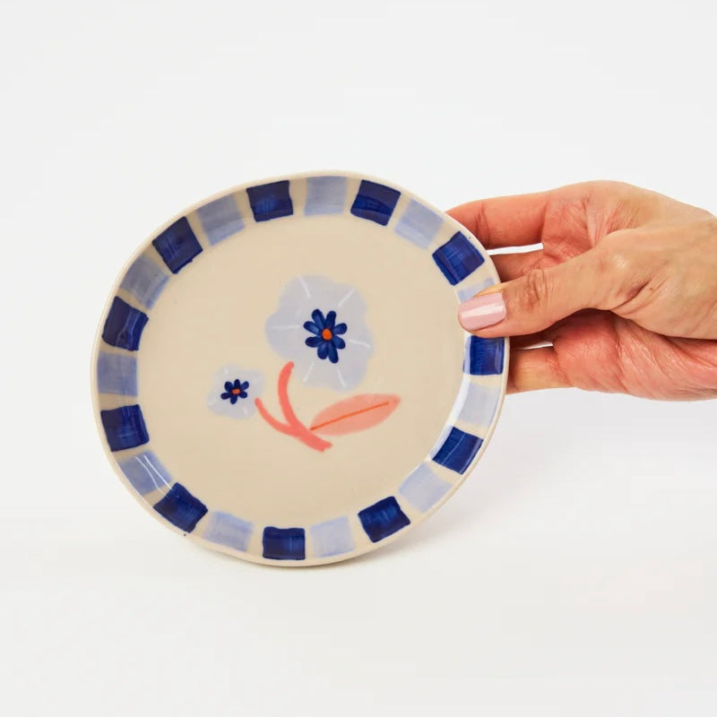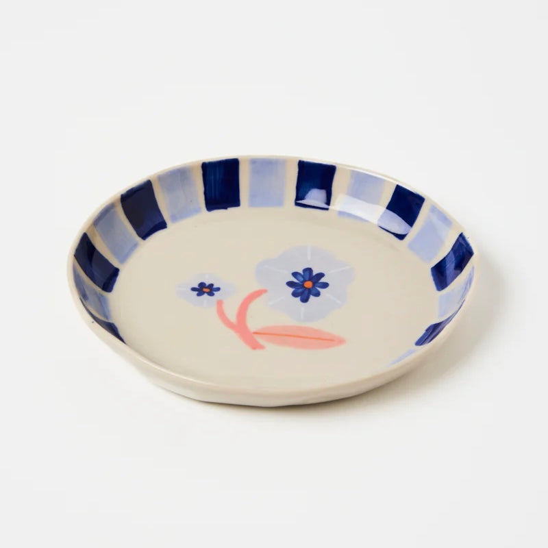 The Bloomie Blue Flower Dish is perfect for those finishing touches, whether it's sea salt by the stove, rings by the sink, or a slice of lemon beside your G&T. Hand-painted with a bold floral motif and glazed in calming cobalt tones.