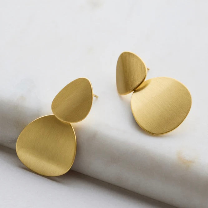 The Frankie Brushed Earring is a stunning stud earring with which features a double drop design, the perfect statement piece to elevate your look.