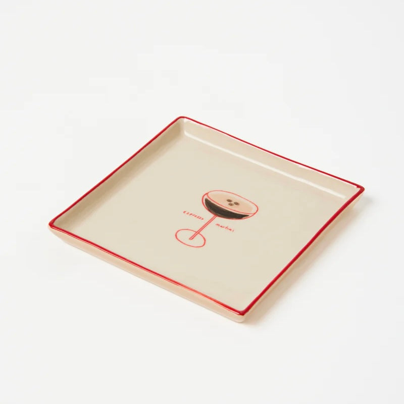 Keep it small, neat, and caffeinated! This espresso martini ceramic dish is perfect for bar snacks or a cheeky chocolate or two. With its inky rim and stylised cocktail art, it's a must have for espresso martini fans and party planners.