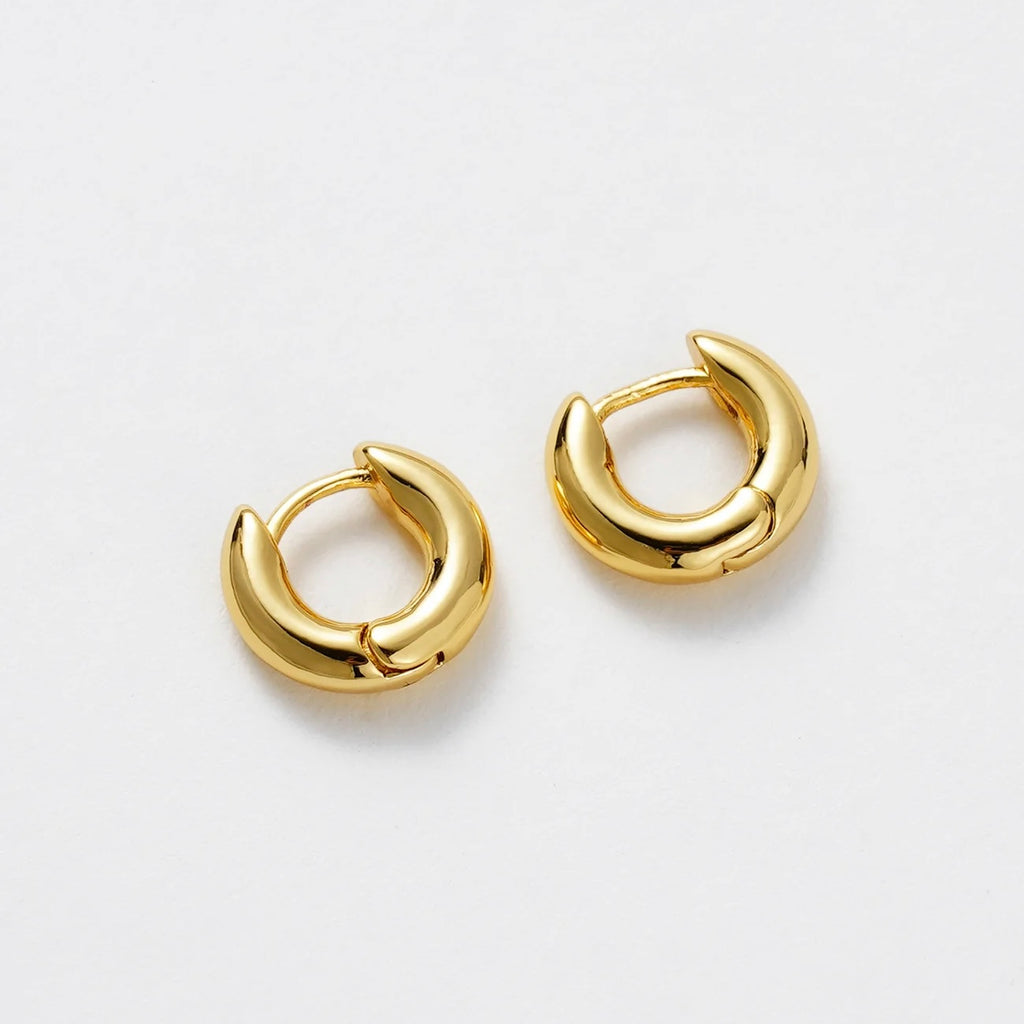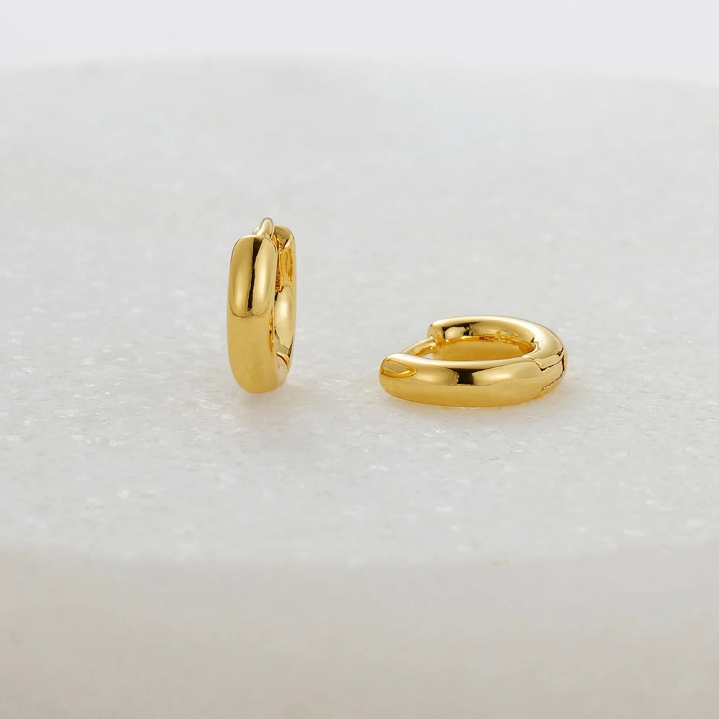 A timeless essential, the Suri Huggie features a sleek, polished gold finish with a softly rounded silhouette. Designed for everyday wear, this tiny 6mm Huggie adds effortless sophistication to any ear stack – perfect on its own or layered with your favourite hoops