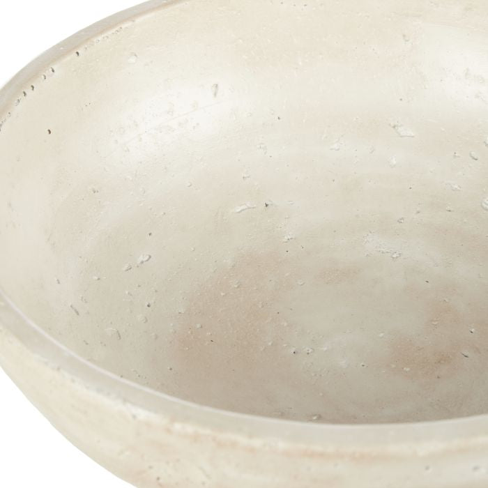 This Napier Decorative Bowl is crafted from cement with a travertine finish.