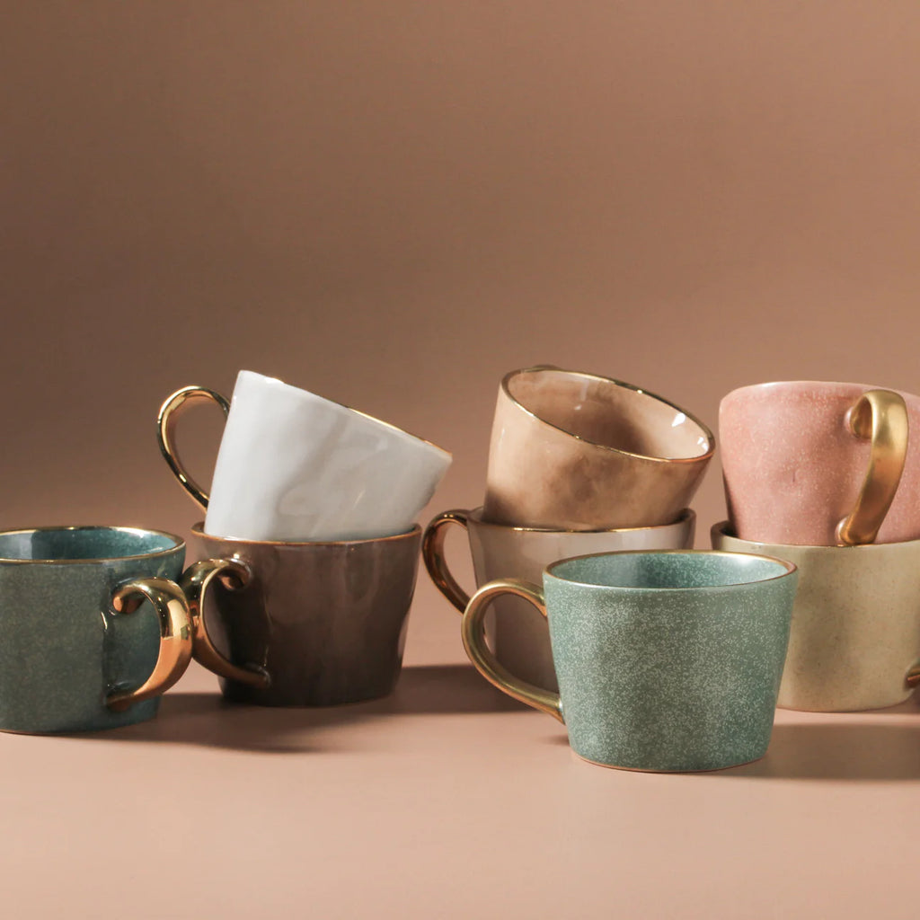 Our exclusive range of beautiful Ariel mugs has amassed a loyal cult following and continues to sell out time and again. They have been handmade and glazed in a reactive glaze in 5 different colours and gilded with gold around the rim and the handle. They are always a favourite amongst the Relax & Entertain team and make the most perfect gift for someone you love.