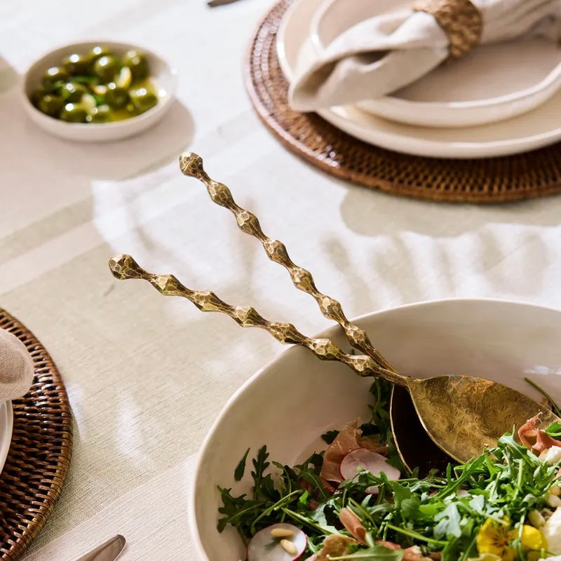 Beautifully weighty and full of artisanal charm, these forged salad servers bring texture and character to the table. The hand-worked surface and sculptural bobble detail make them a standout addition to any dining setting – both practical and decorative.