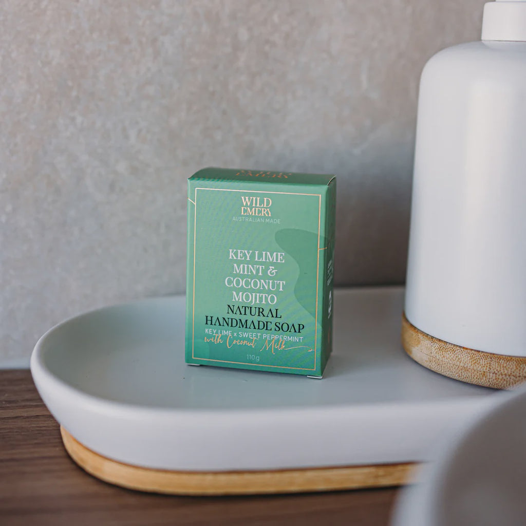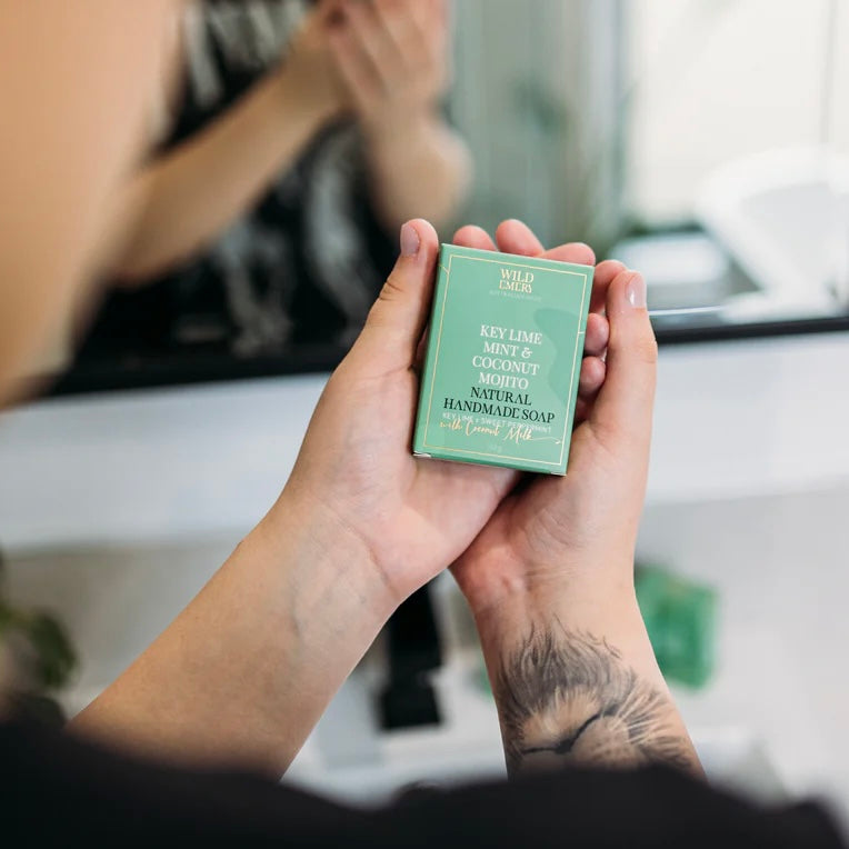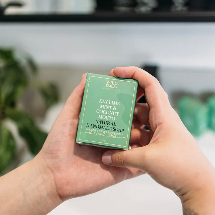 Our Key Lime Mint & Coconut Mojito soap will have your taste buds dancing with essential oil blend of key lime and sweet peppermint. Handmade with coconut milk for a creamy mojito inspired soap. Handcrafted with organic shea butter, infused with antioxidant rich Australian hemp seed oil and silky kaolin clay for a luxurious and cleansing lather.