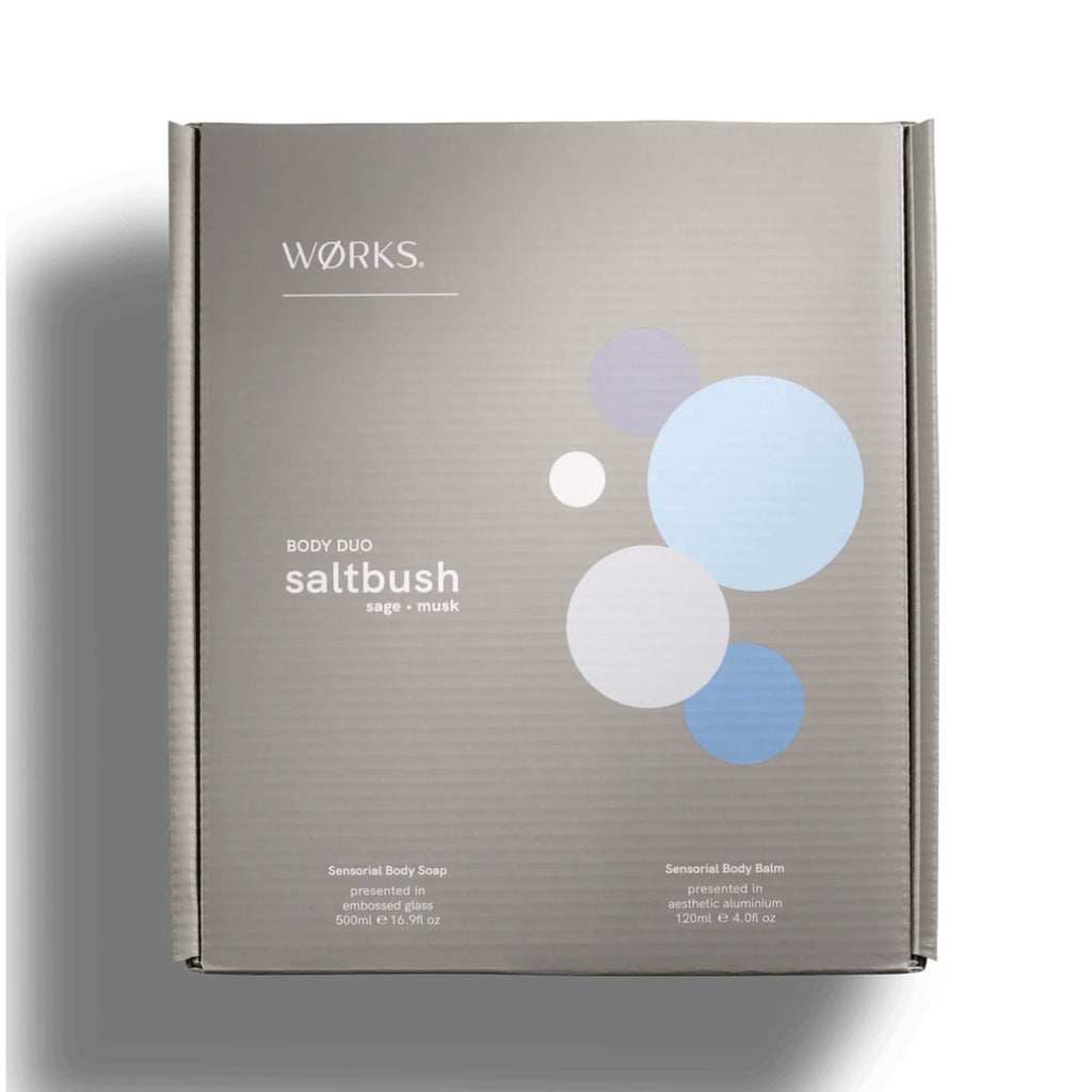 Lift the lid to reveal a Saltbush Body Soap 500ml perfectly presented alongside its complementary Balm 120ml.