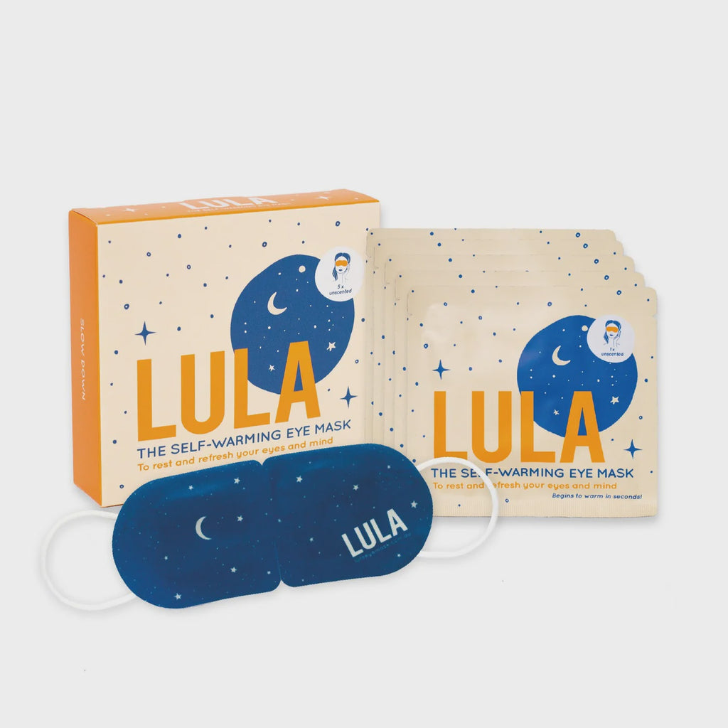 UNSCENTED SELF-WARMING EYE MASKS Like a warm hug for your eyes and mind, the Lula Eye Mask starts warming the moment you open it. Lie back, get ready to relax and unfold the mask. When the mask meets the air it begins to warm up, staying at a comforting temperature so you can drift into a daydream or a deep night’s sleep.