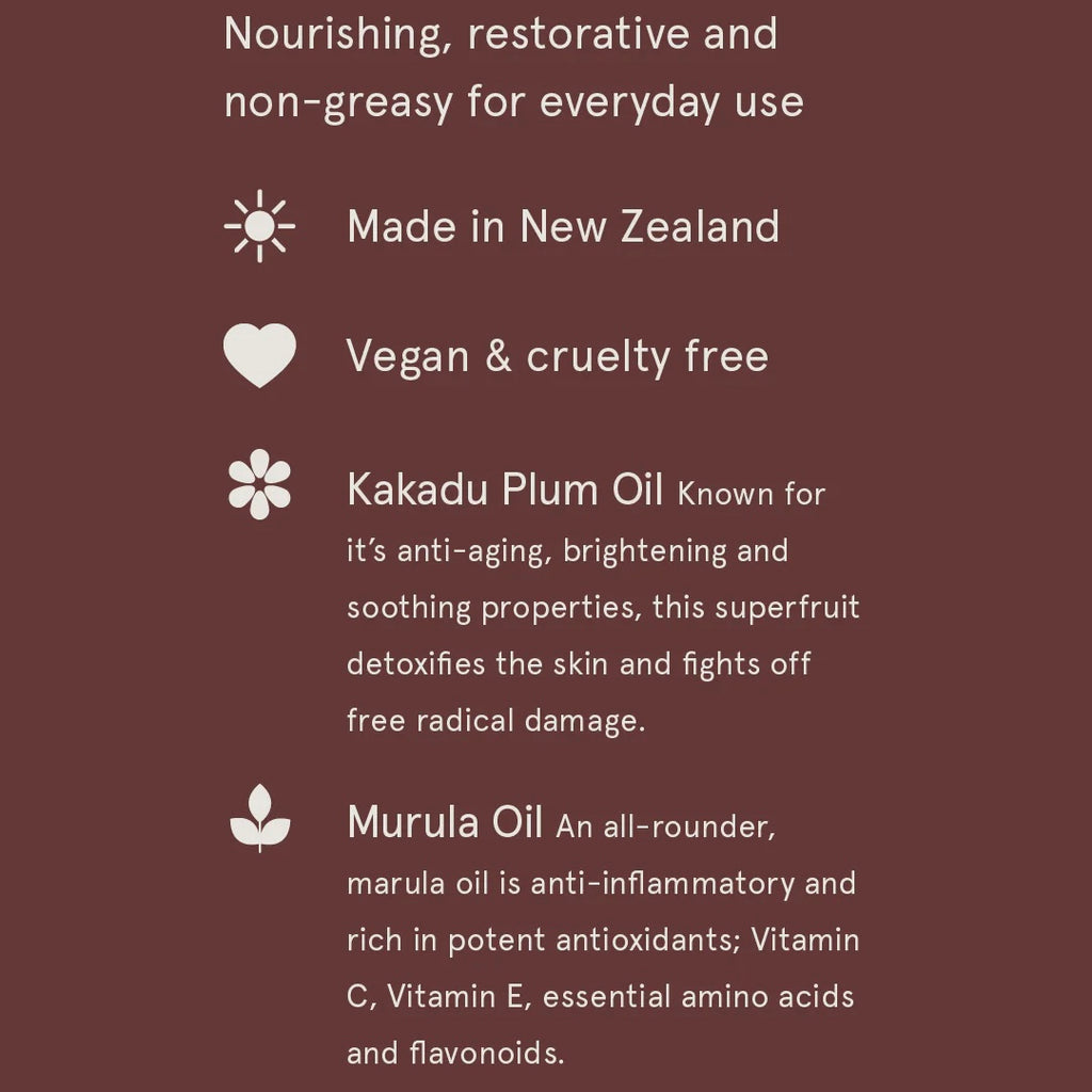 Ingredients: Water, Prunus Amygdalus Dulcis (Sweet Almond) Oil, Cetearyl Alcohol, Glyceryl Stearate SE, Glycerin, Parfum, Sodium, Stearoyl Glutamate, Phenoxyethanol, Sambucus Nigra Fruit Extract, Ethylhexylglycerin, Sclerocarya Birrea Seed Oil, Macadamia Integrifolia Seed Oil, Simmondsia Chinensis (Jojoba) Seed Oil, Terminalia Ferdinandiana Seed Oil COUMARIN, LINALOOL, CITRONELLOL, LIMONENE, ALPHA-ISOMETHYL IONONE