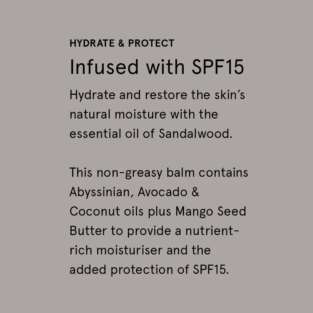 A non-greasy face balm with Avocado & Coconut oils, Mango Seed Butter and added SPF15.